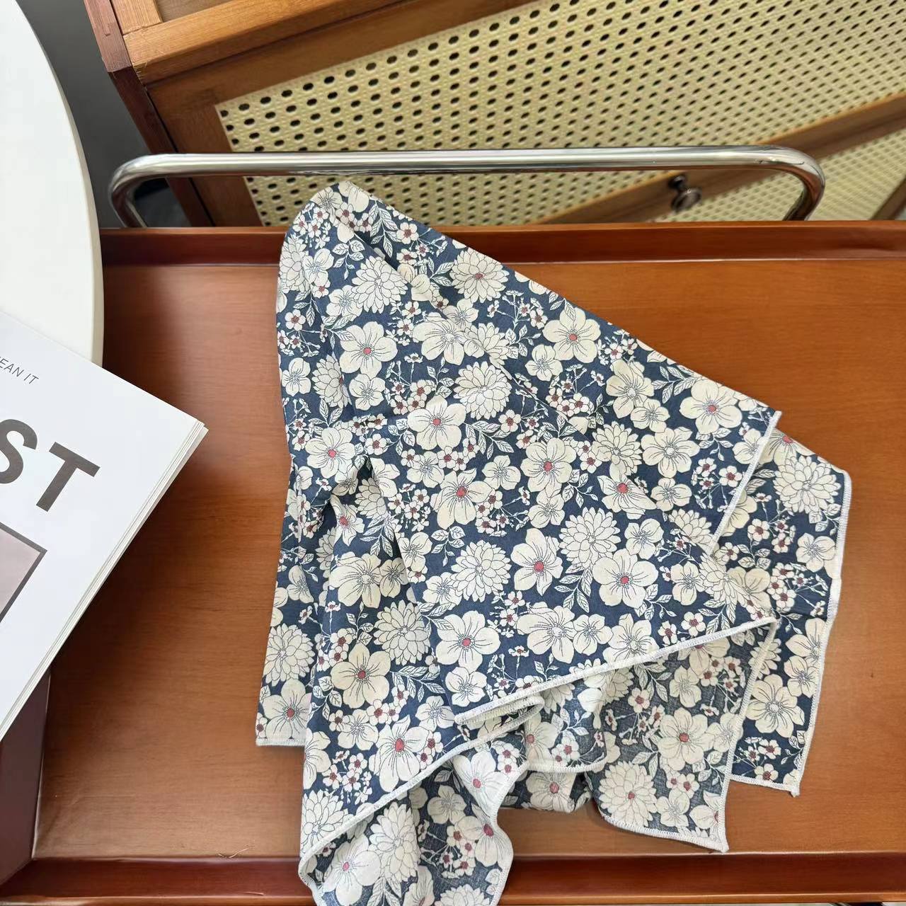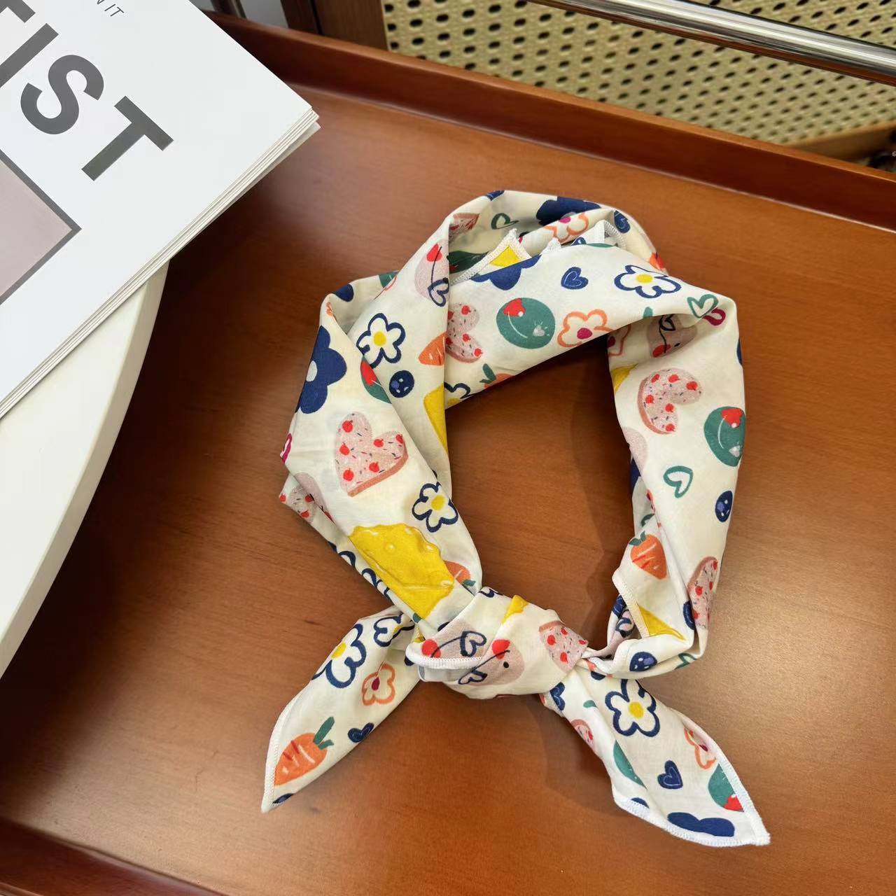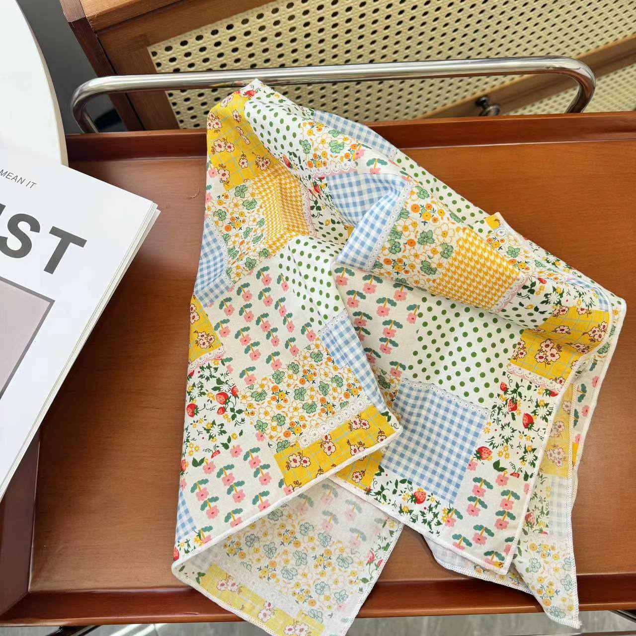 순수한 면 작은 광장 스카프 꽃 복고풍 작은 신선한 예술 스카프 실크 스카프 장식 헤드 스카프 헤어 벨트 스카프 꽃 한국 스타일스토어 가기
