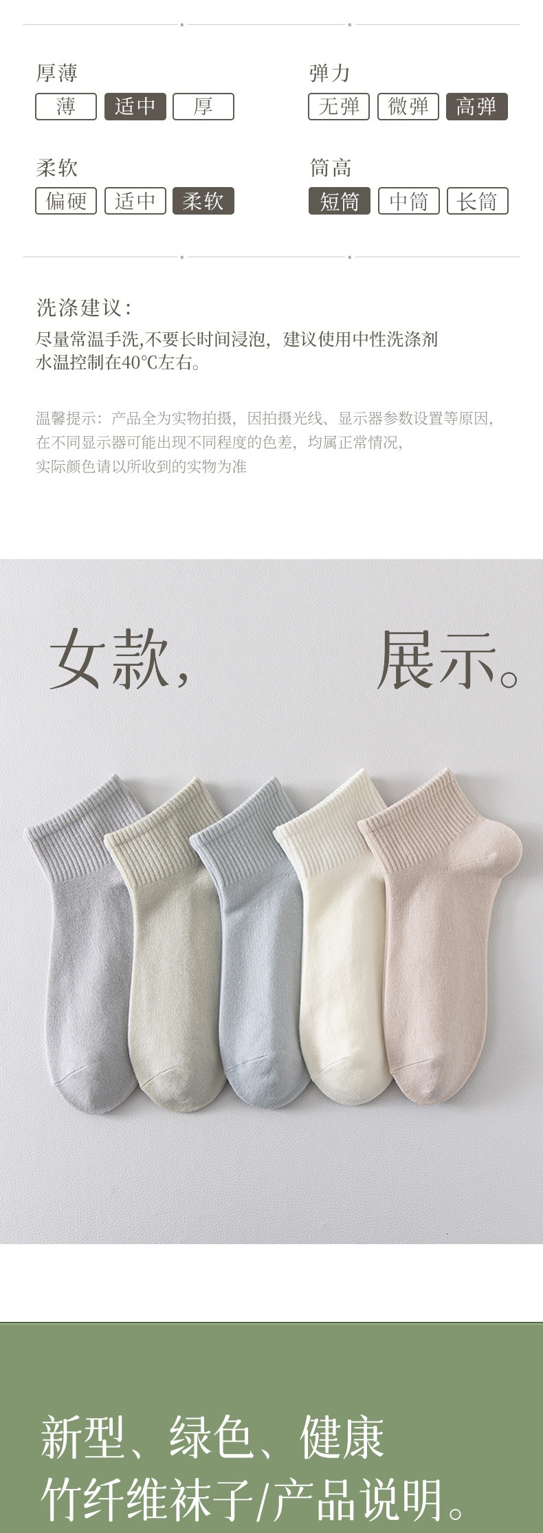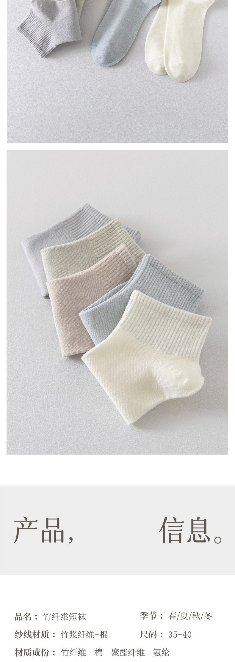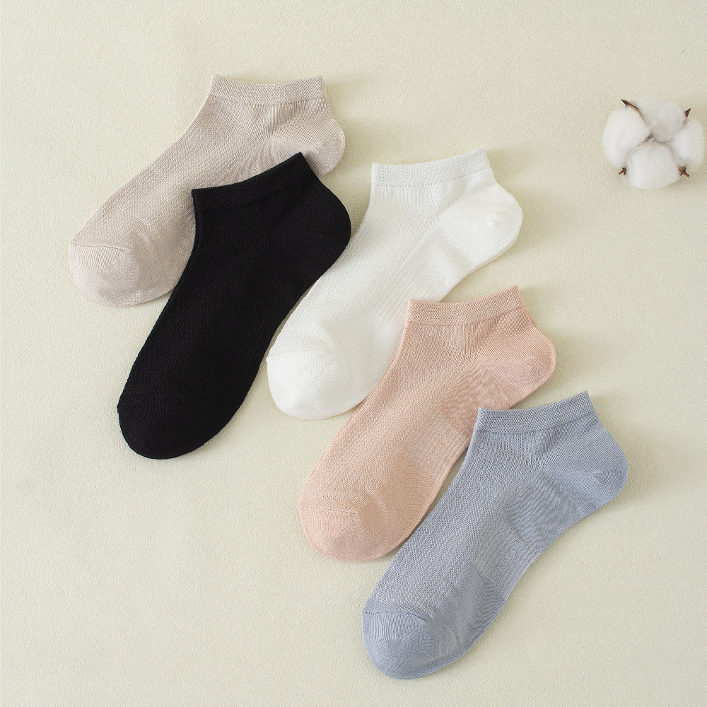 부드럽고 편안한 양말 여성의 짧은 튜브 양말 대나무 섬유 통기성 봄과 가을 단색 한국 캔디 컬러 스포츠 여성 양말