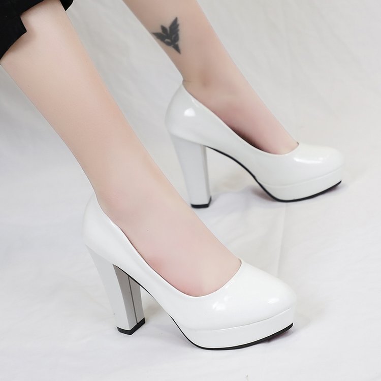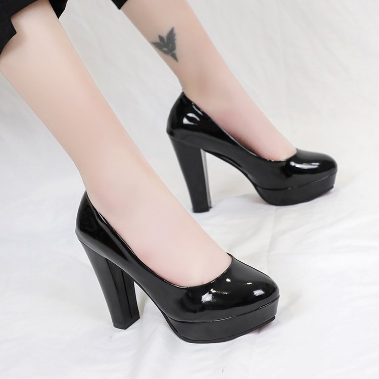 사계절 작업화 여성의 편안한 한국식 새로운 하이힐 싱글 레이어 신발 블랙 여성 가죽 신발 하이힐 전문 청키 힐 여성 신발스토어 가기