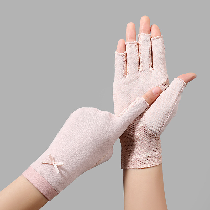 봄, 여름, 가을용 7097-1 여성용 짧은 터치스크린 반장갑, 손가락 노출형, 사이클링, 운전용, 미끄럼 방지, 네일아트, 자외선 차단, 통기성 장갑