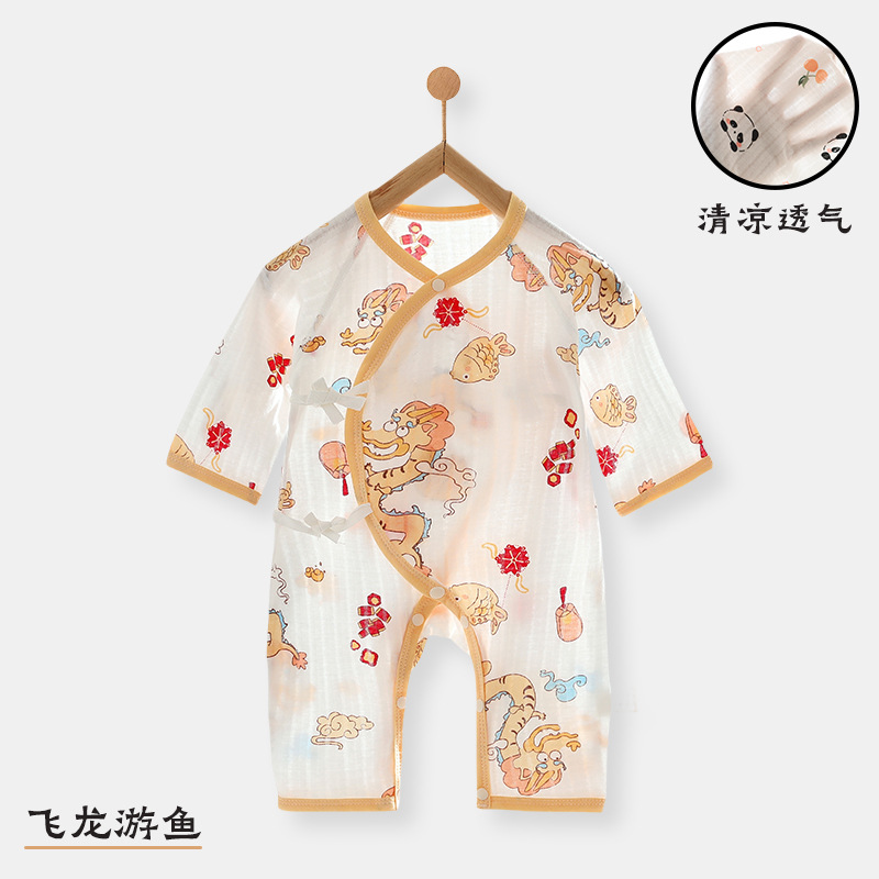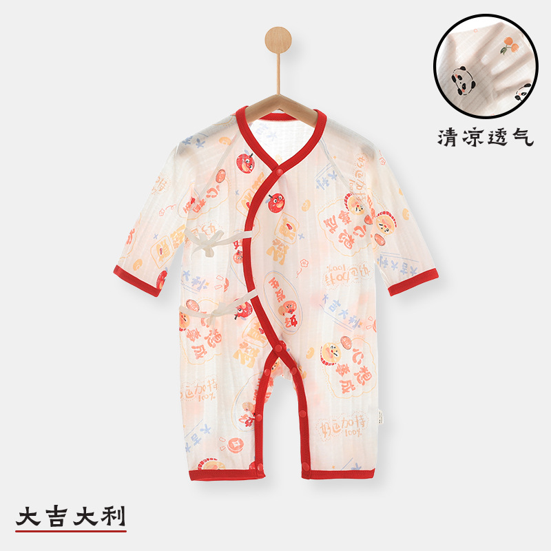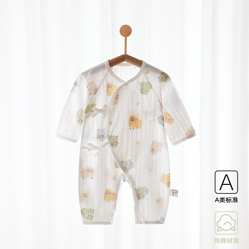 신생아 옷, 여름 순면 긴팔 스님 나비옷, 얇은 롬퍼스, 신생아 원피스