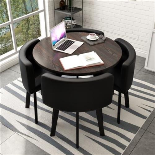 • 블랙 라운드 테이블 블랙 가죽 의자