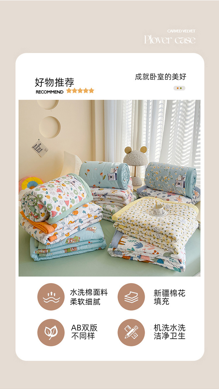 새로운 신선한 여름 시원한 이불 신장 면화 꽃 코어 세척 피부 친화적인면 얇은 이불 학생 여름 에어컨 이불 도매