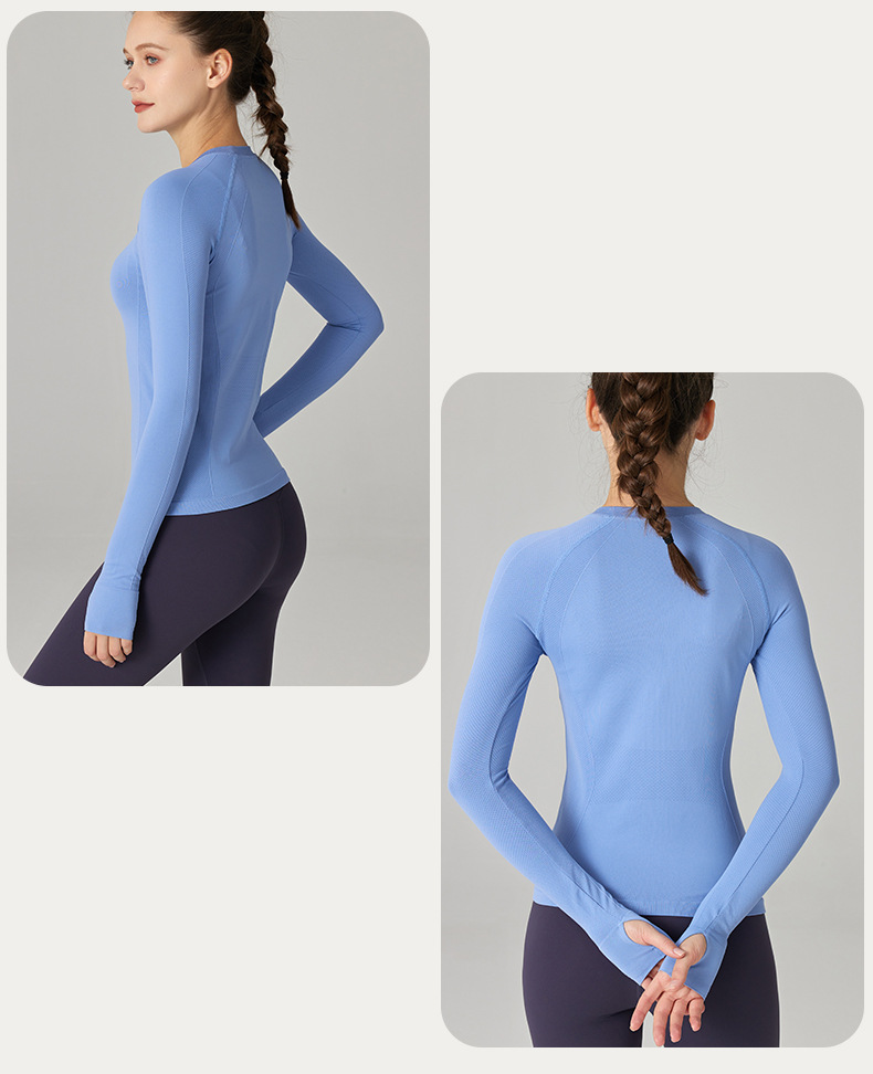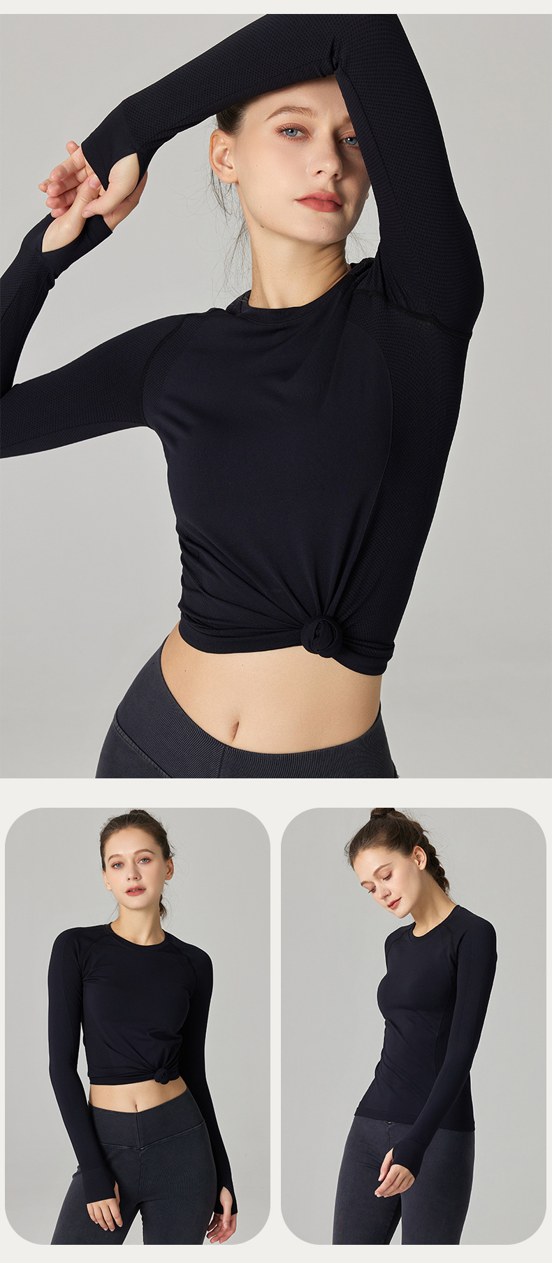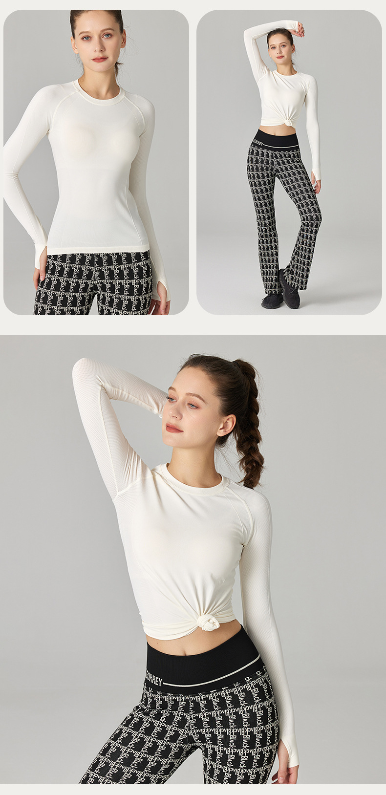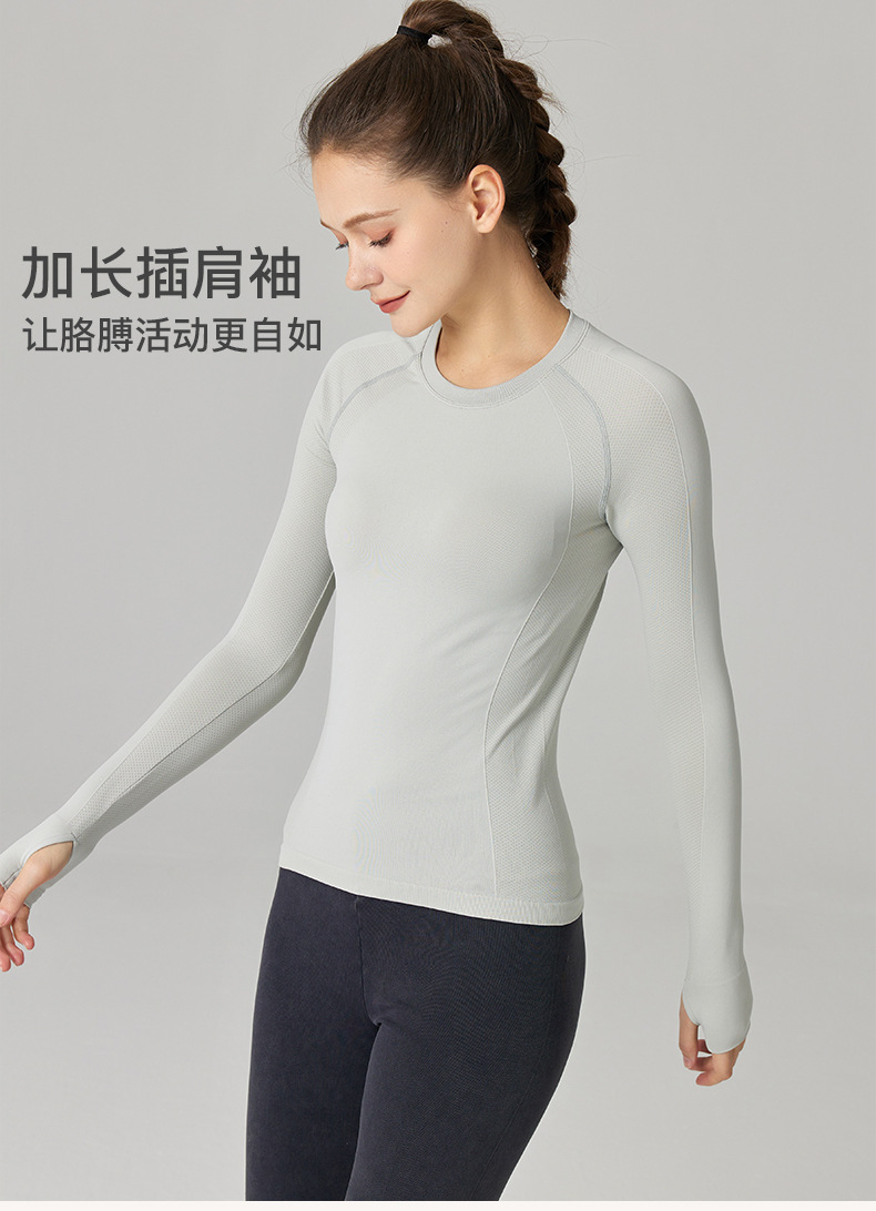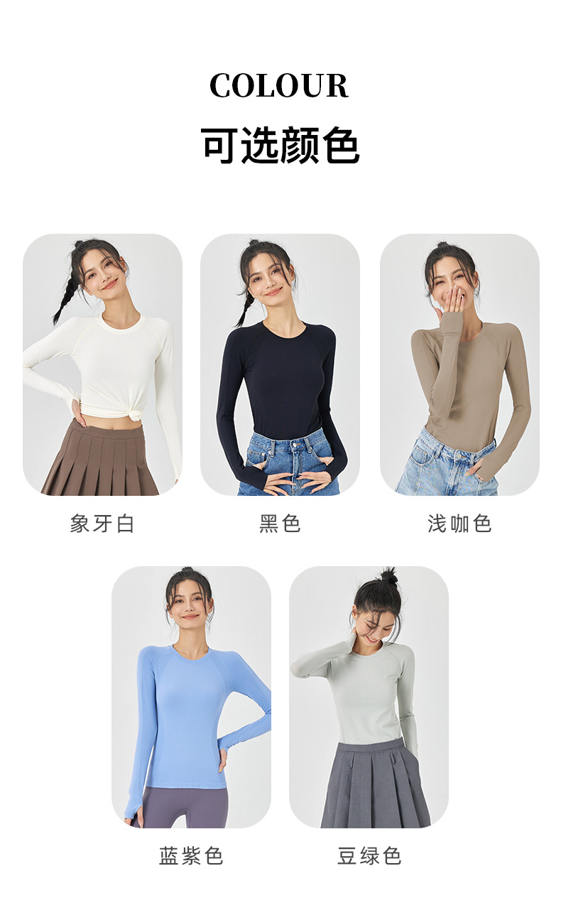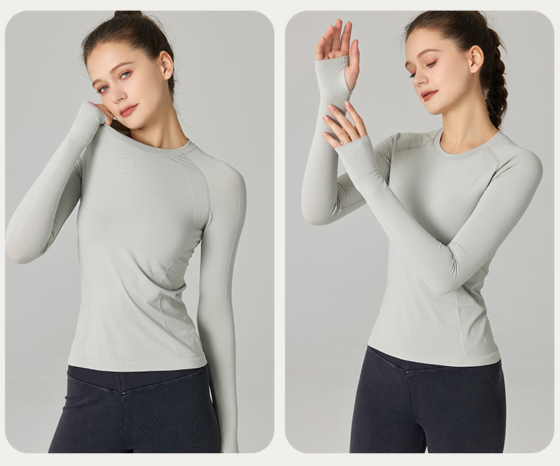 새로운 가을과 겨울 요가 최고 운동복 라운드 넥 티셔츠 긴 소매 슬림 핏 수분 위킹 야외 사이클링 달리기