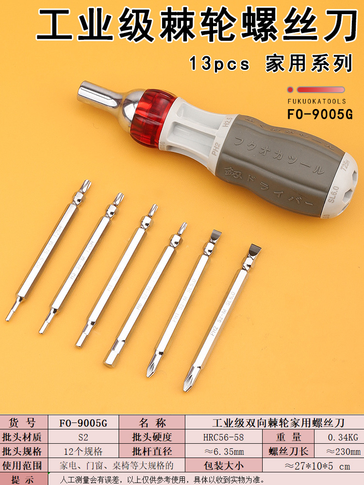 후쿠오카 도구 9005G 양방향 래칫 드라이버 조합 세트 13PC 가정용 크로스 워드 육각형 소켓