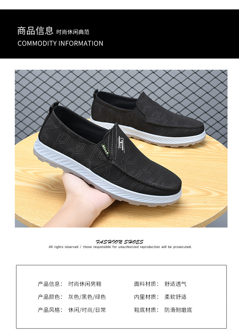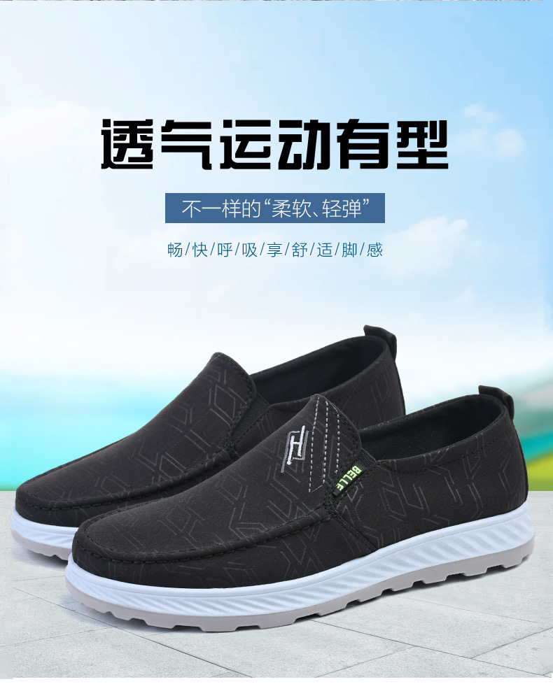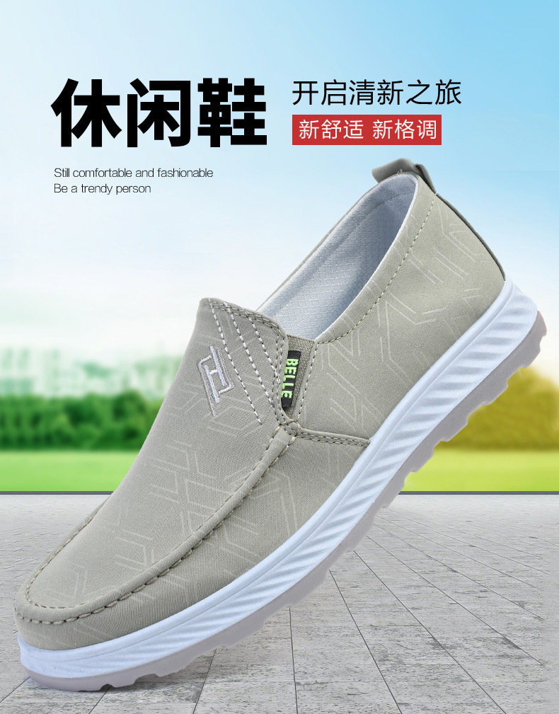 Spring New Old Beijing 천 신발 남성용 통기성 슬립 온 캔버스 신발 부드러운 바닥 편안한 중년 및 노인 캐주얼 아빠 신발