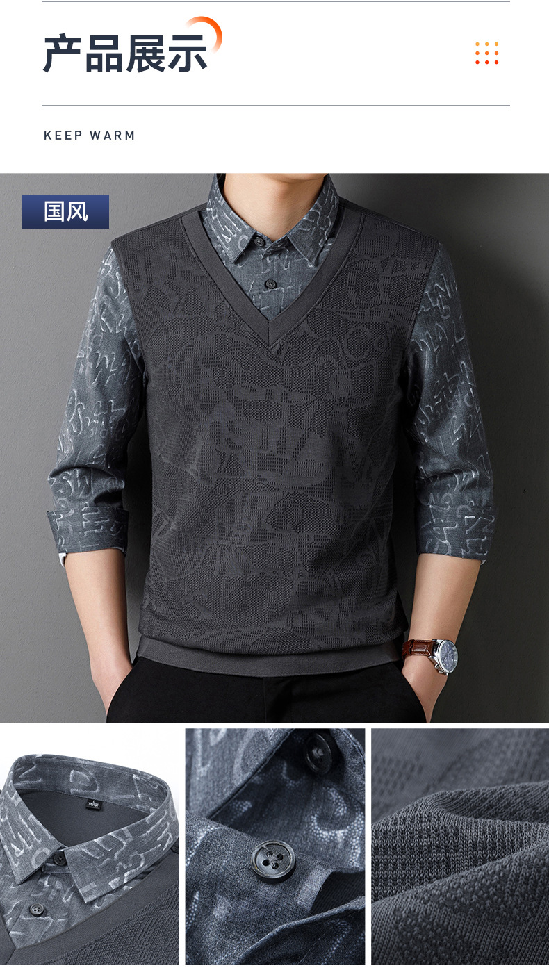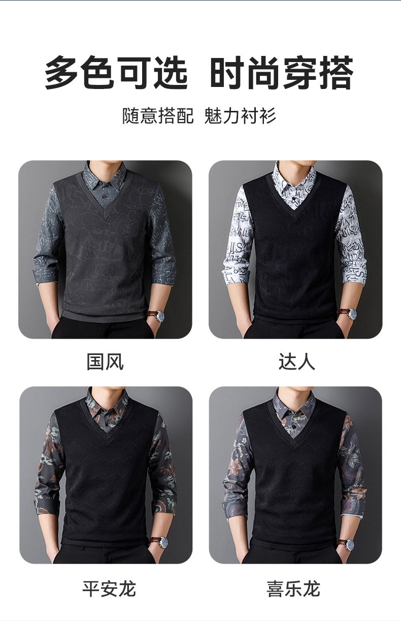 2024 새로운 가짜 투피스 스웨터 남자 긴팔 봄과 가을 국가 스타일 내부 니트 스웨터 자카드 크래프트 드래곤의 해 독점스토어 가기