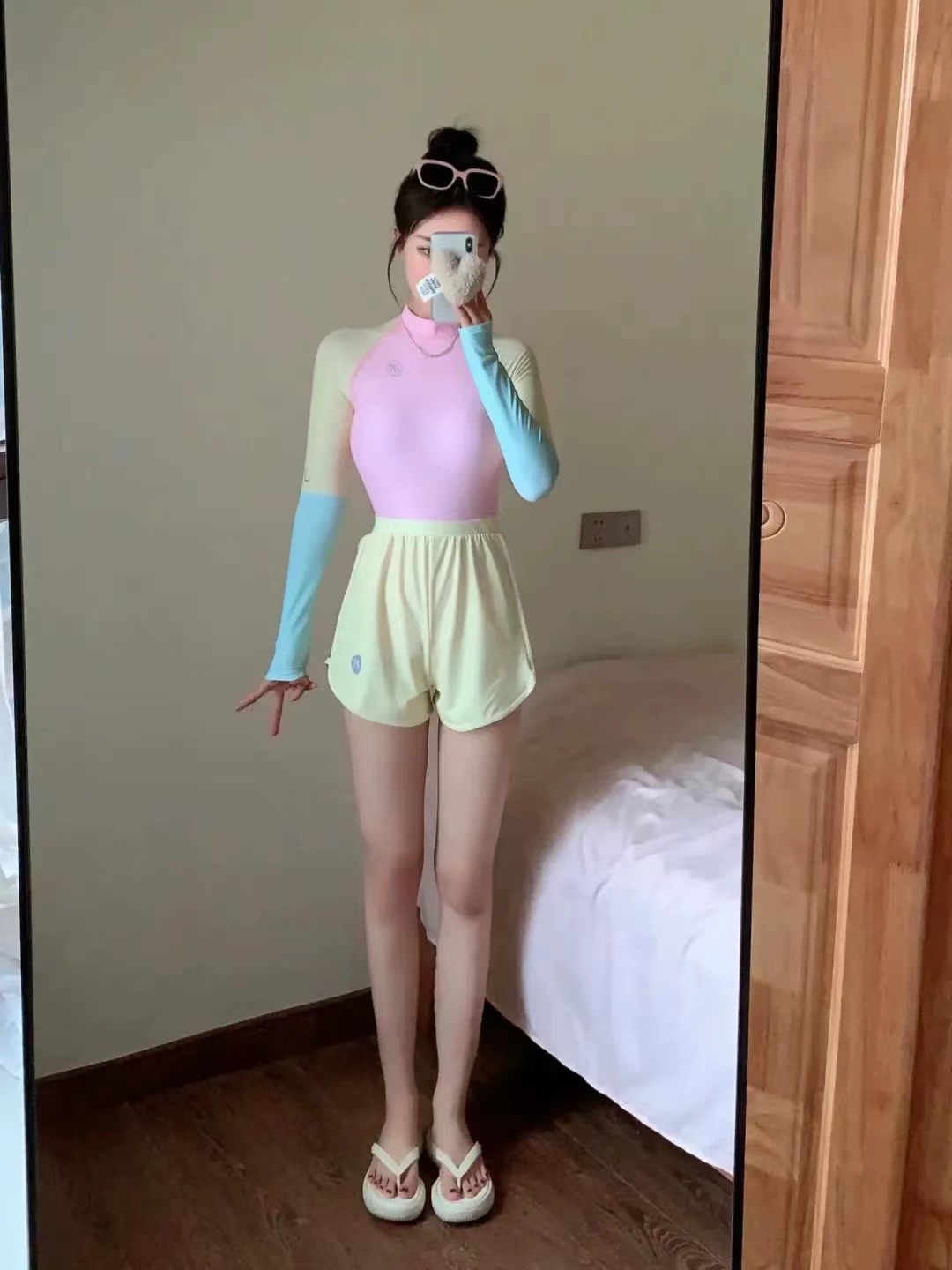 2024 직접 수영복 여성 원피스 보수적 인 긴팔 스포츠 수영 반바지 다이빙 서핑 의류 학생 수영복스토어 가기