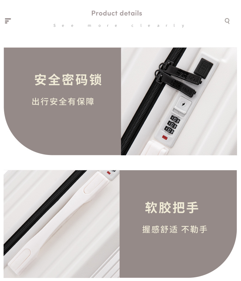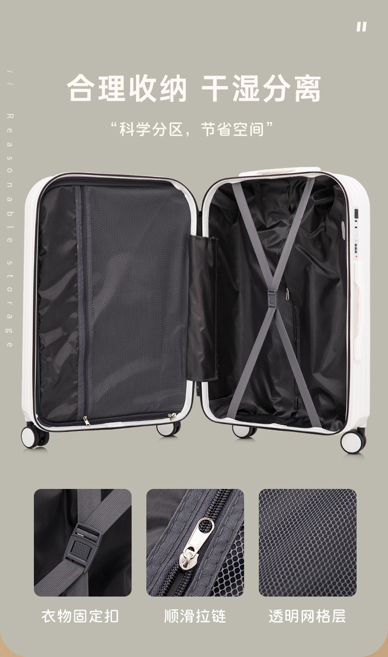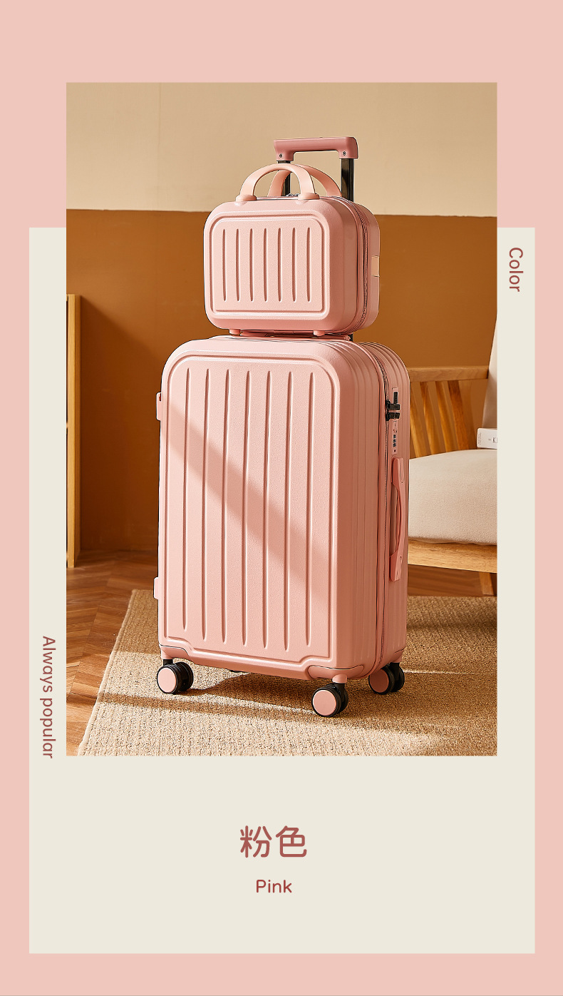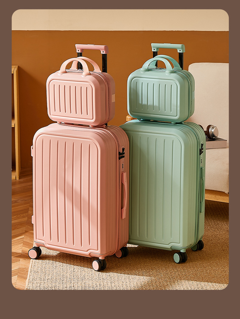 컵 홀더 대용량 수하물 트롤리 케이스 여성의 높은 색상 값 다기능 휴대용 라이트 톤 휠 탑승 가방