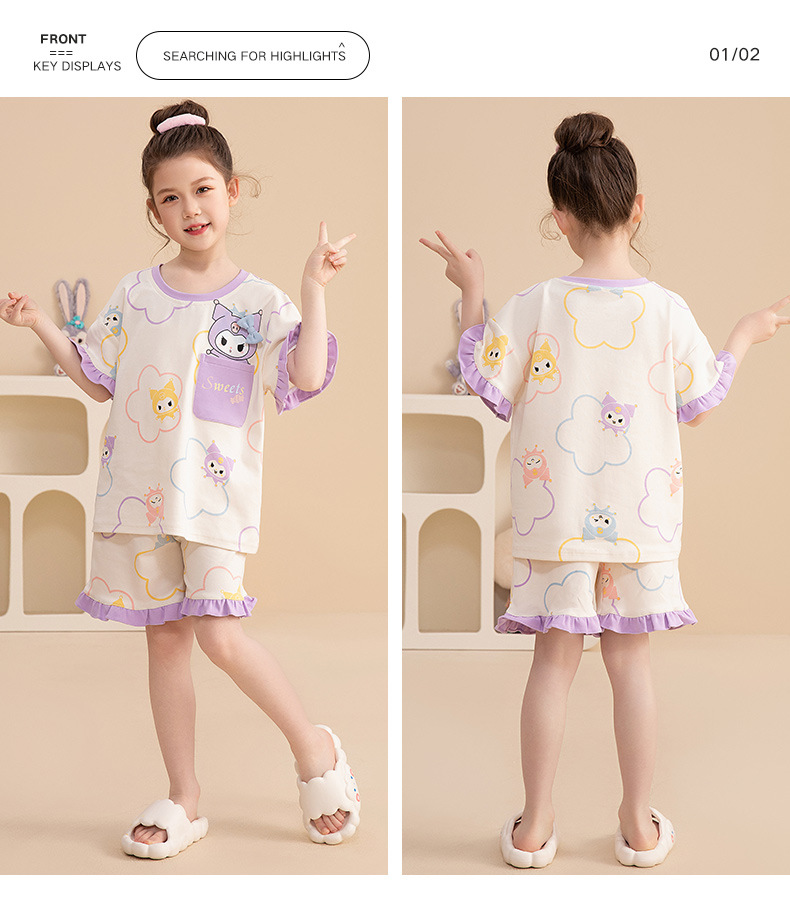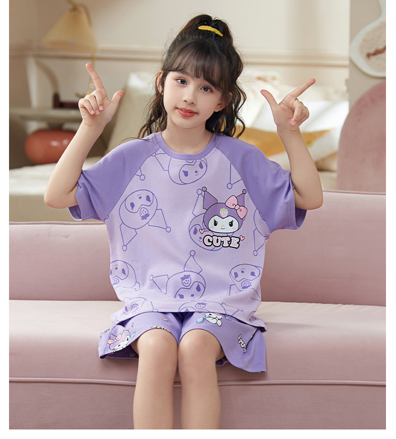 소녀 잠옷 여름 순면 반팔 얇은 2025 새로운 어린이 소녀 여름 중 큰 어린이 세트 홈 옷