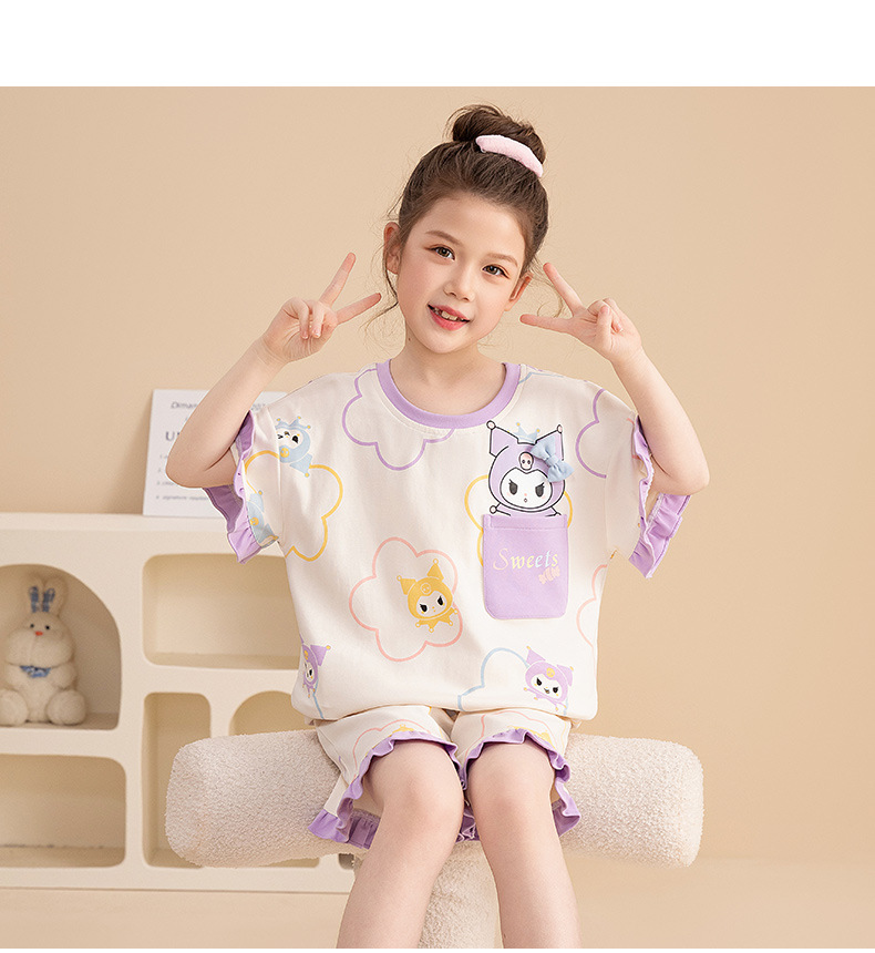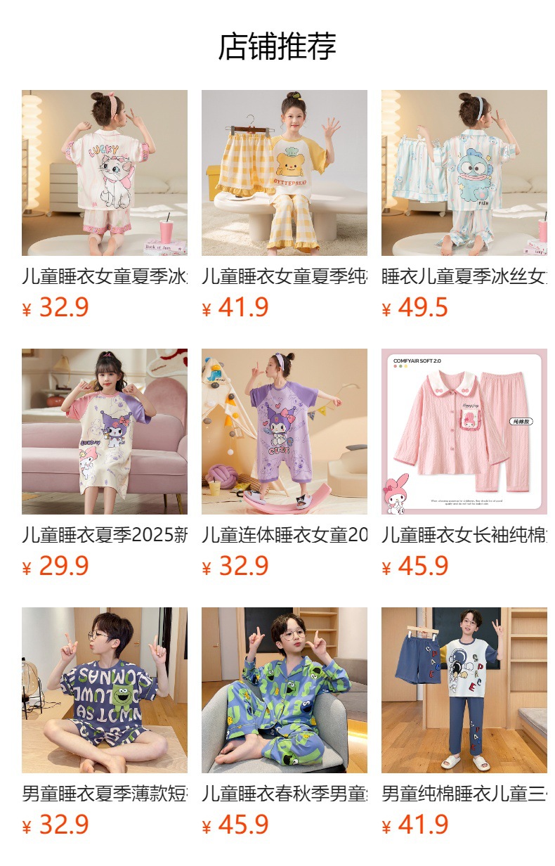 소녀 잠옷 여름 순면 반팔 얇은 2025 새로운 어린이 소녀 여름 중 큰 어린이 세트 홈 옷스토어 가기