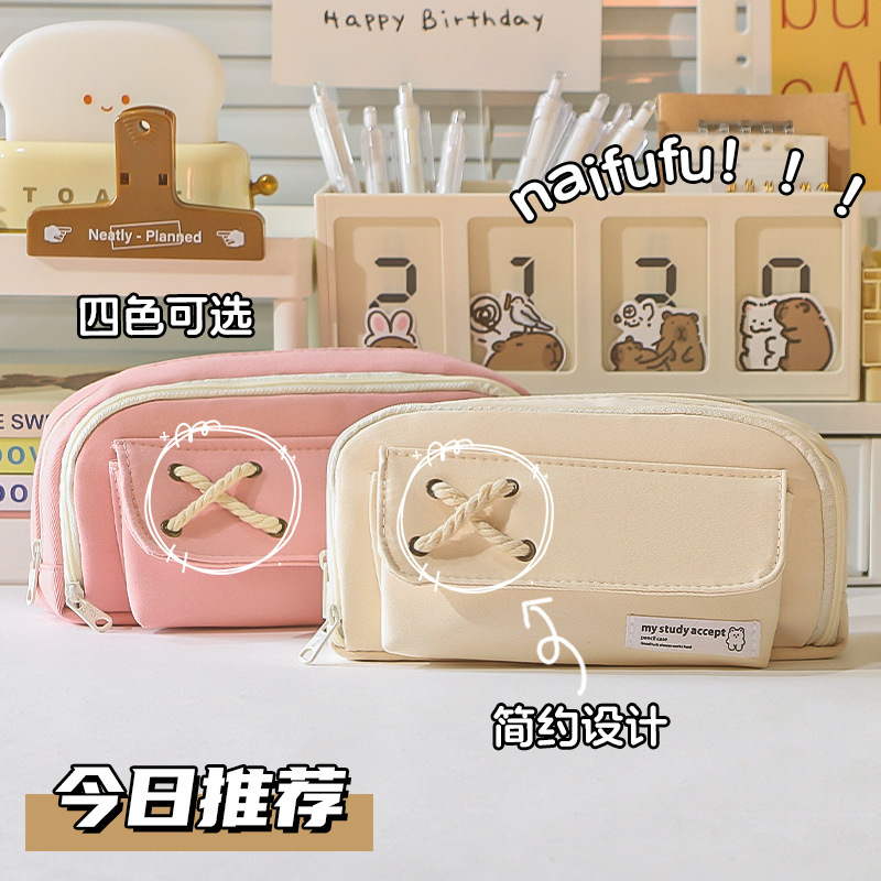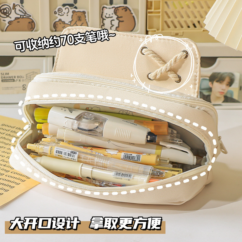 버튼 코튼 로프 연필 케이스 2024 대용량 여자 어린이 초등학교 문구 케이스 중학교 여자 연필 케이스스토어 가기
