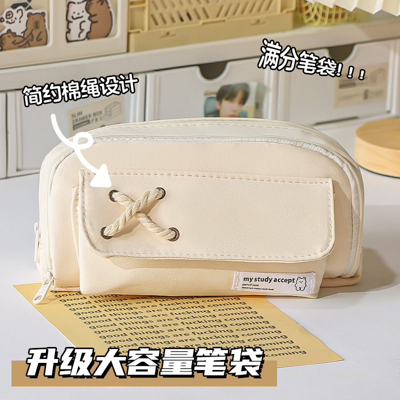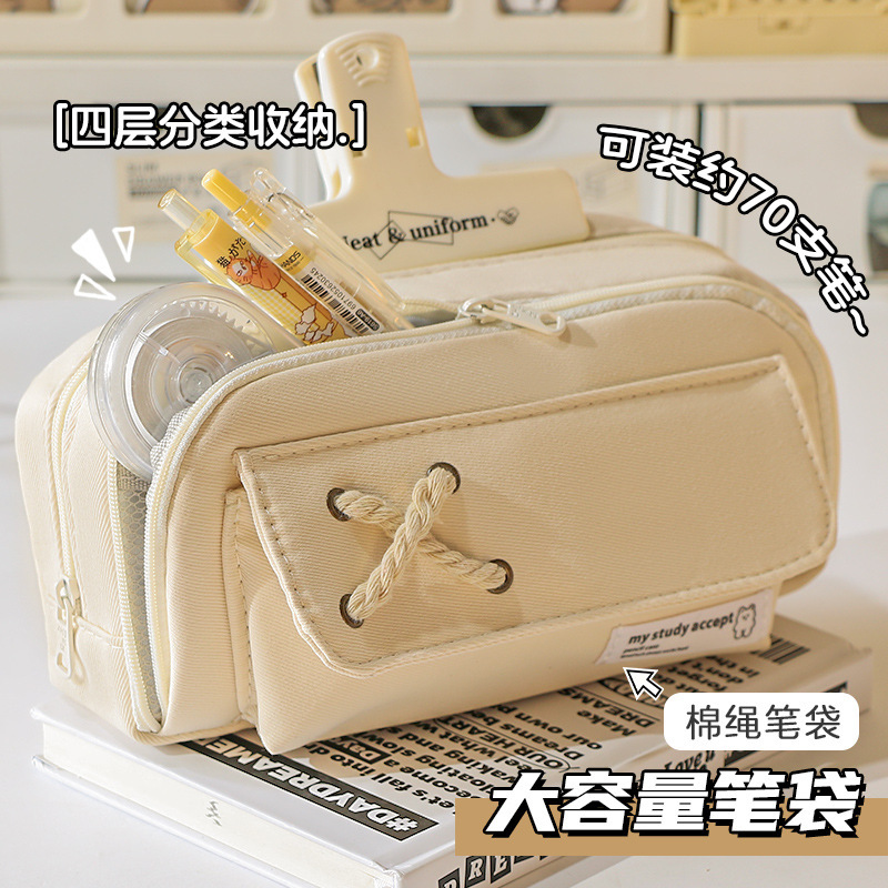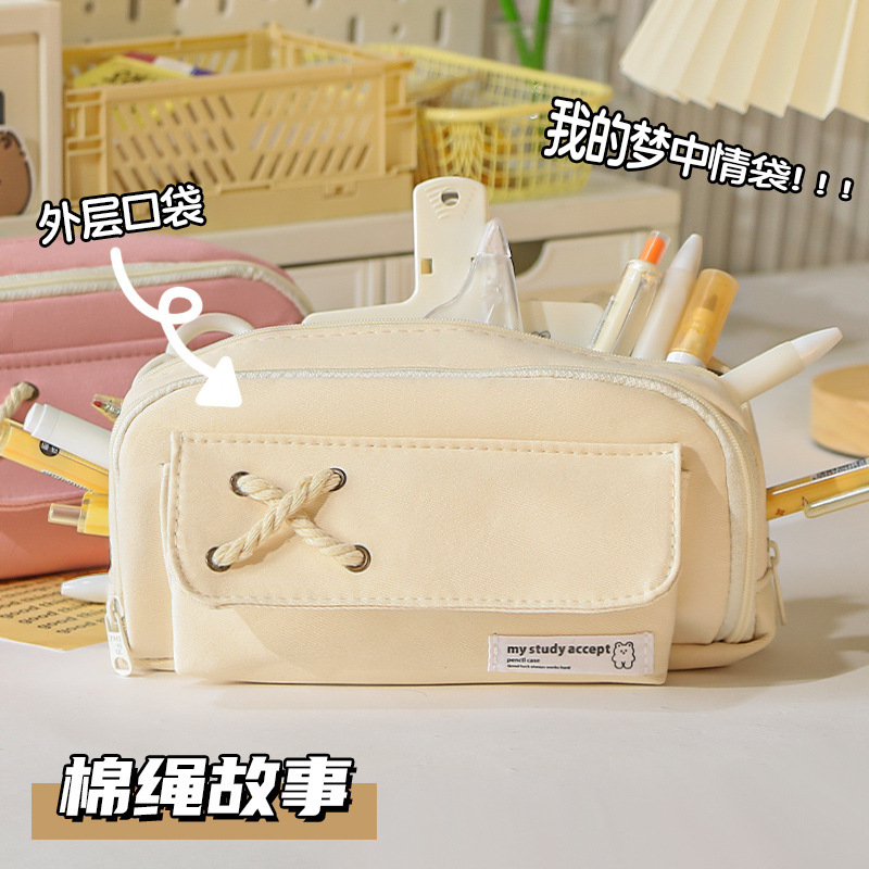 버튼 코튼 로프 연필 케이스 2024 대용량 여자 어린이 초등학교 문구 케이스 중학교 여자 연필 케이스