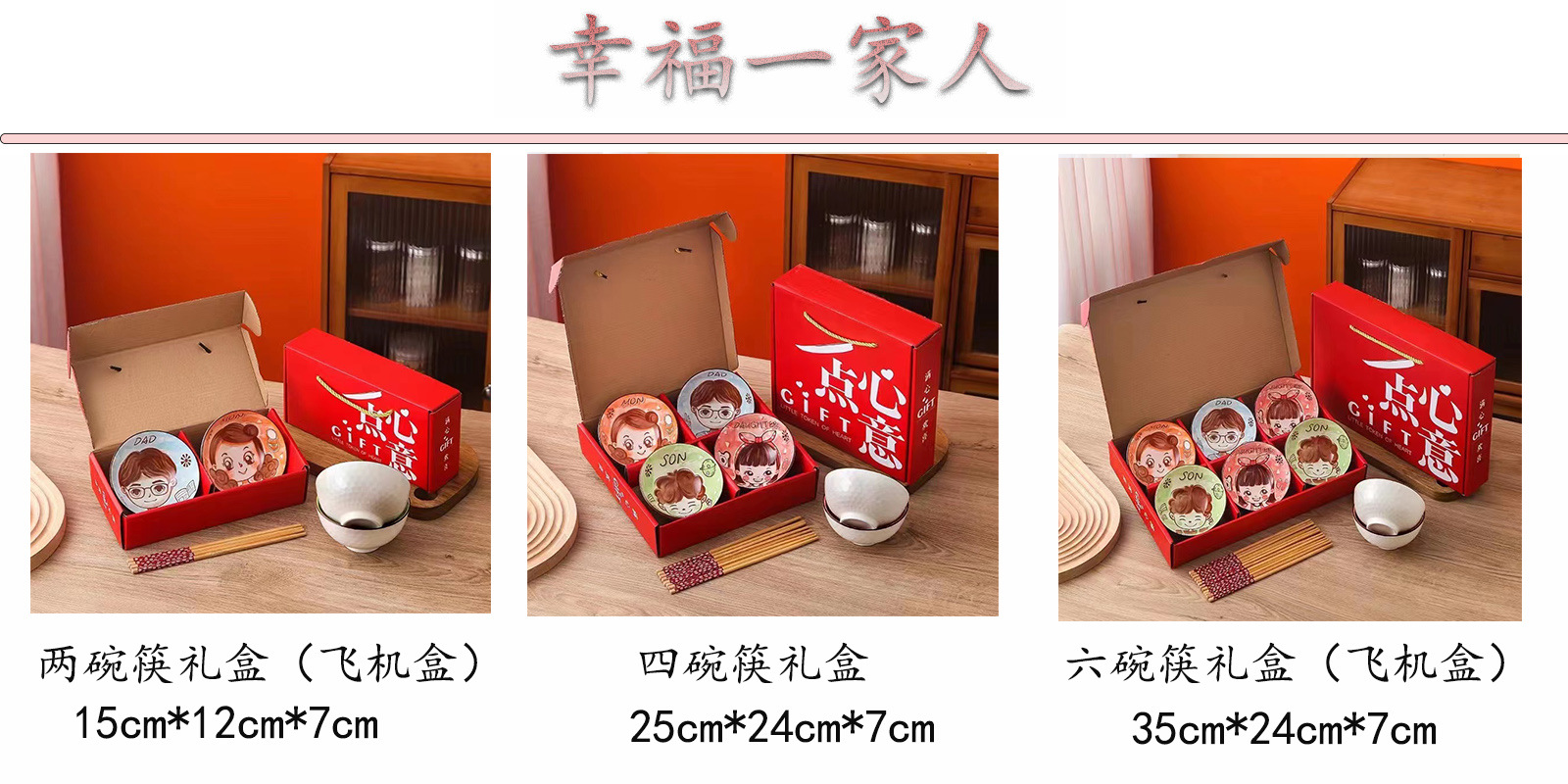 • 리프트 뚜껑 단층 선물 상자 (2 그릇 및 2 젓가락) 50 세트 상자