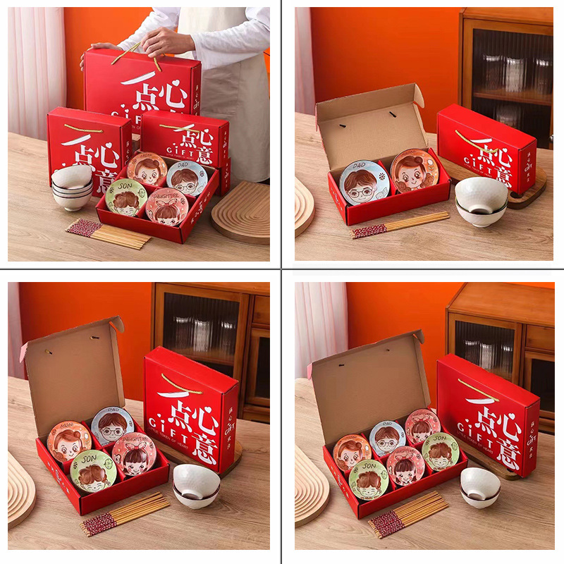 • 리프트 뚜껑 단층 선물 상자 (4 그릇과 4 개의 젓가락) 24 세트의 상자