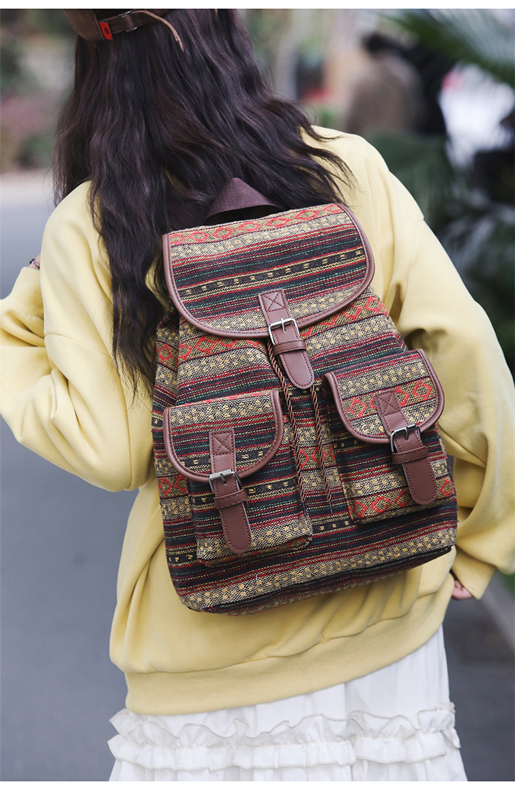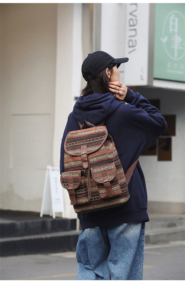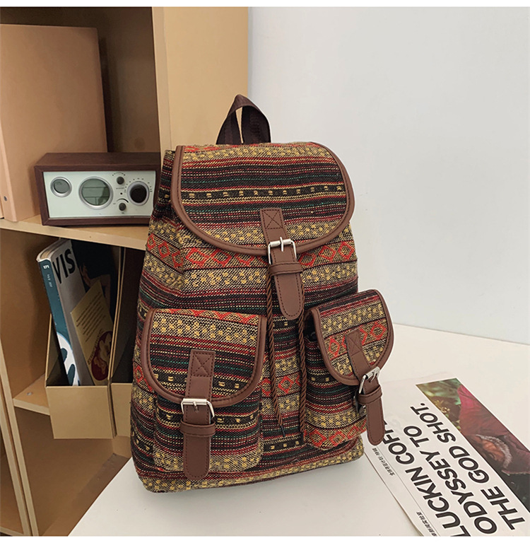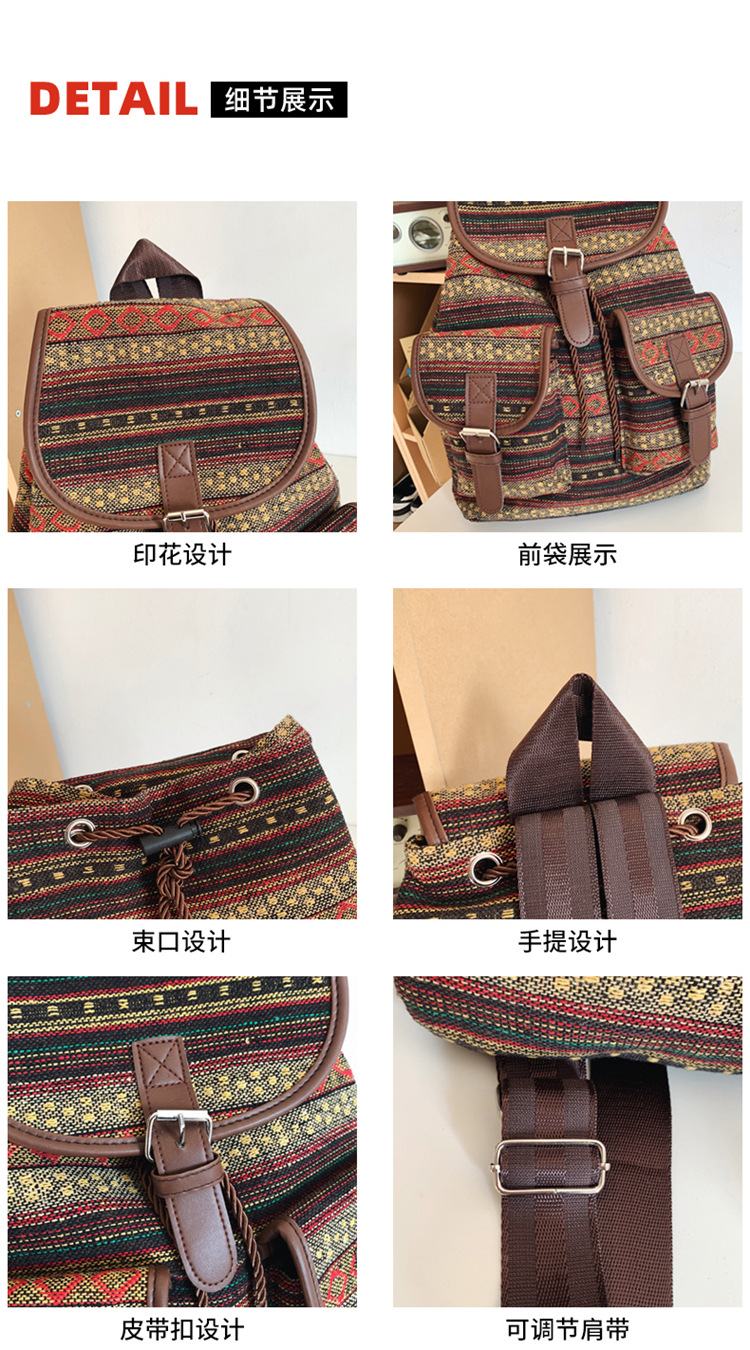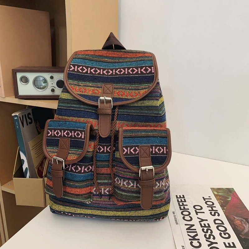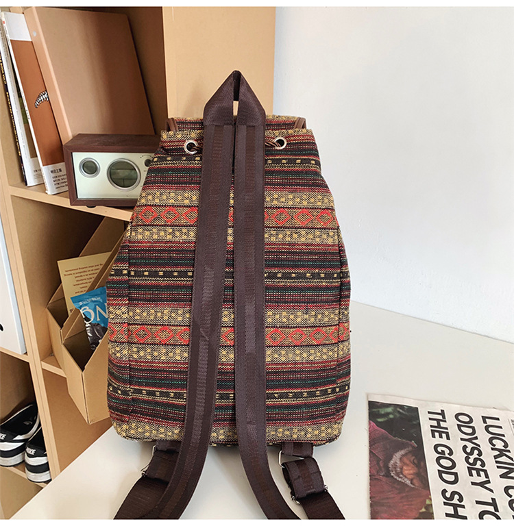 2025 새로운 민족 스타일 배낭 캐주얼 격자 무늬 Drawstring 레트로 여성 대용량 학교 가방 Drawstring 버킷 가방