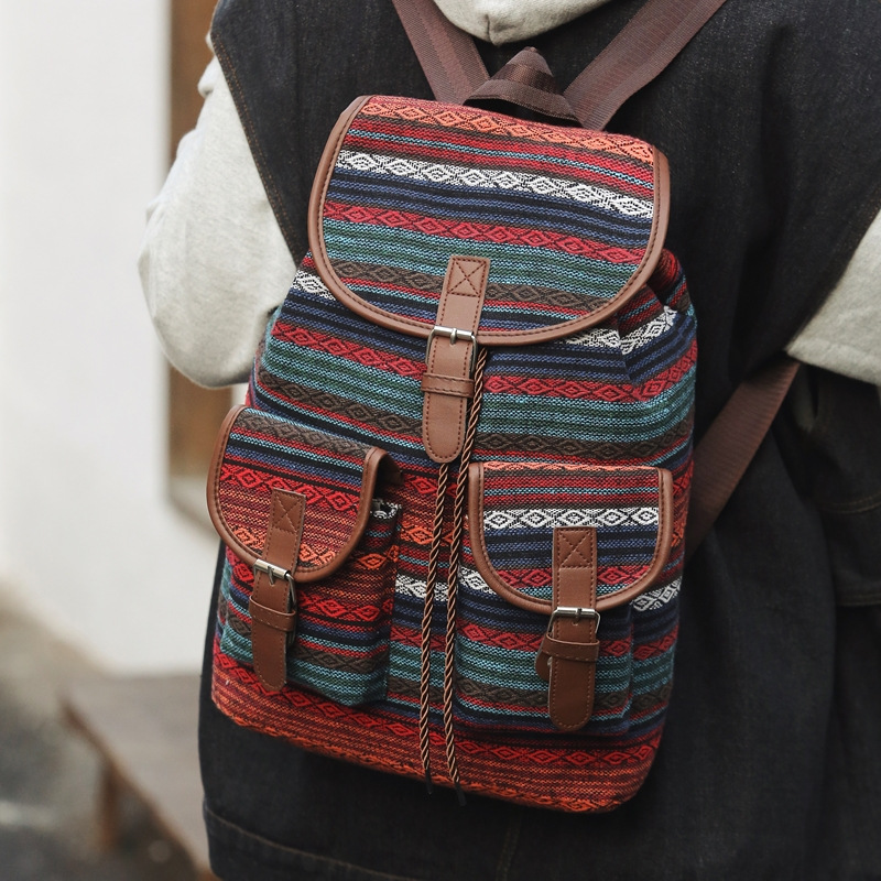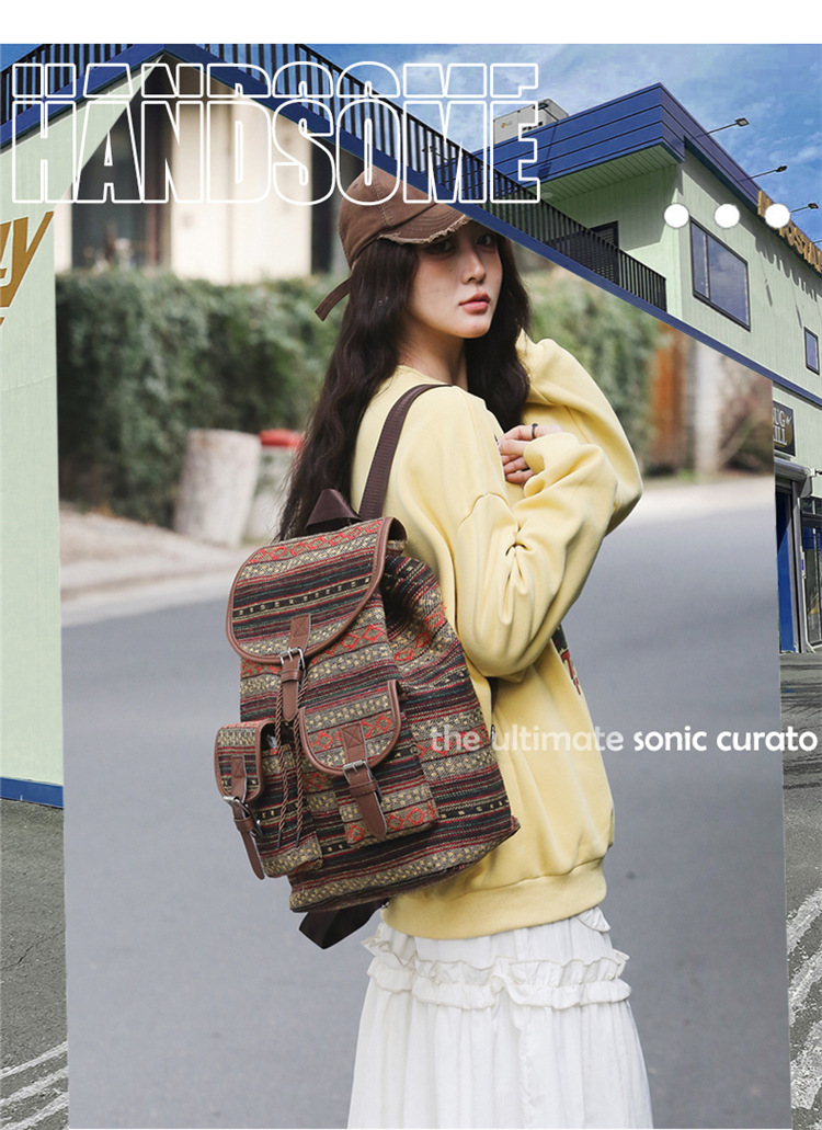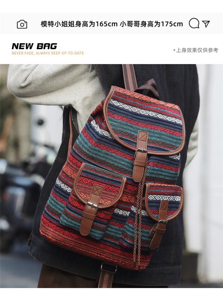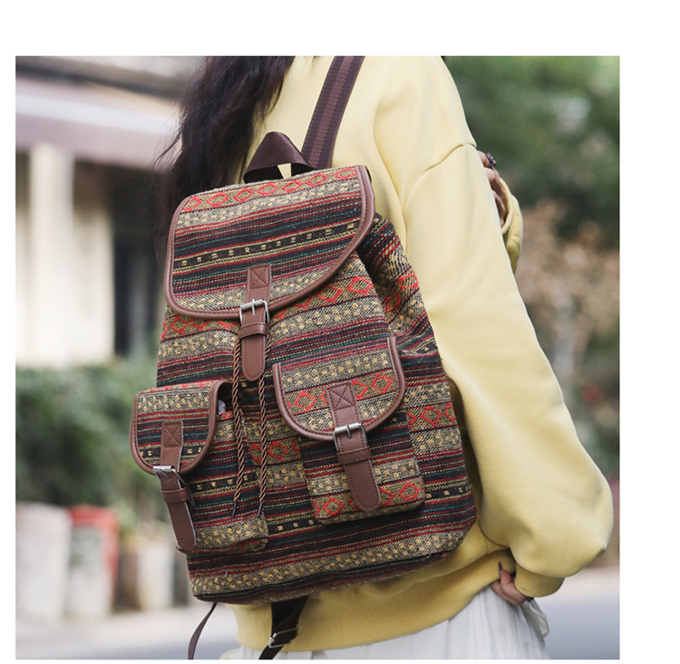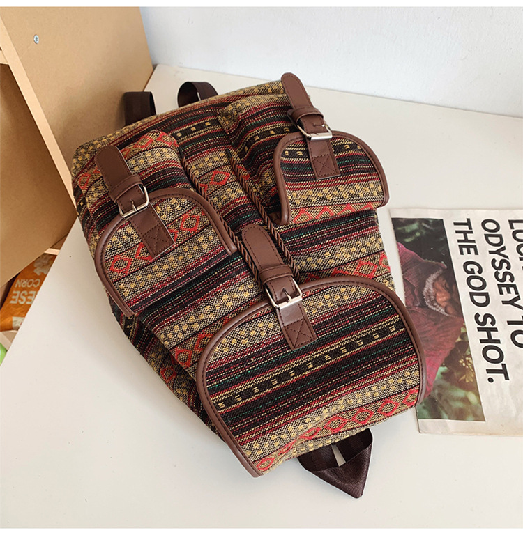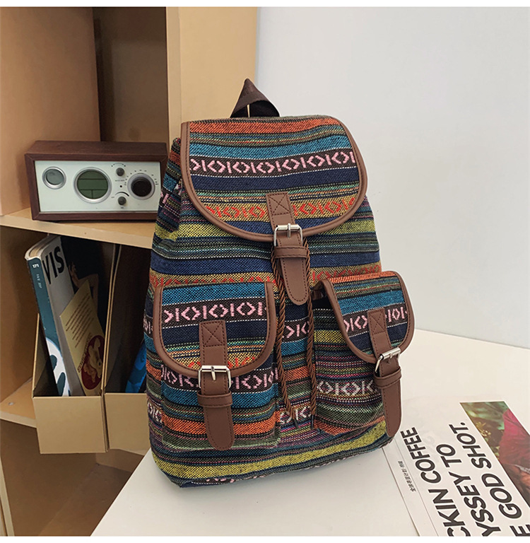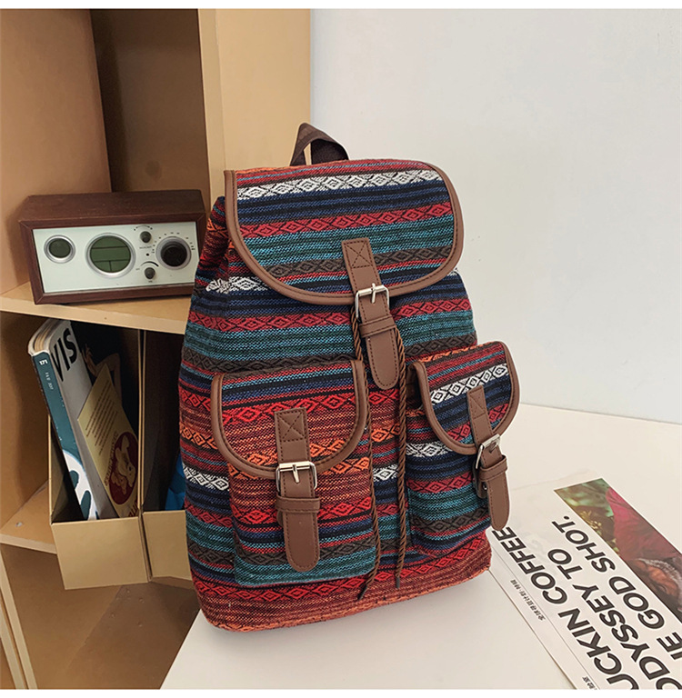2025 새로운 민족 스타일 배낭 캐주얼 격자 무늬 Drawstring 레트로 여성 대용량 학교 가방 Drawstring 버킷 가방