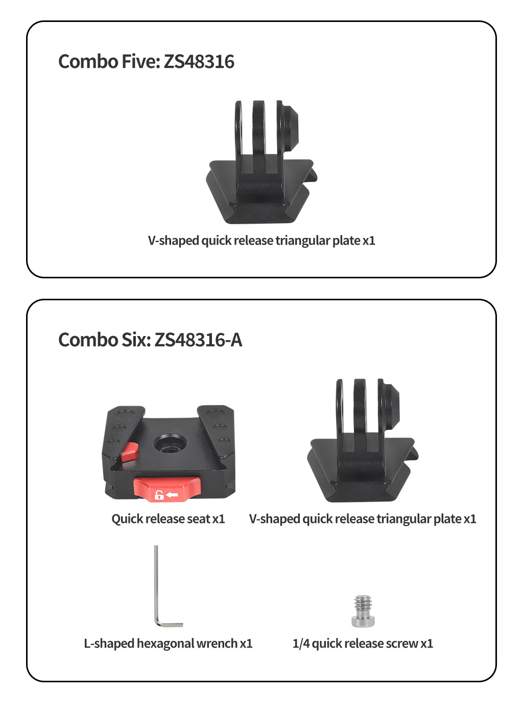 • 빠른 설치베이스 + 1/4 빠른 설치 플레이트 상단 커버