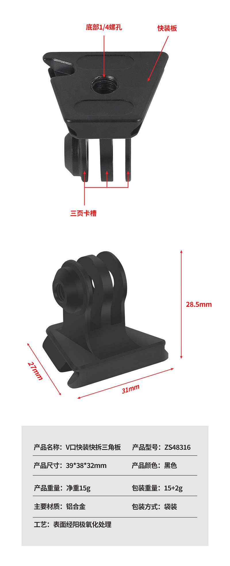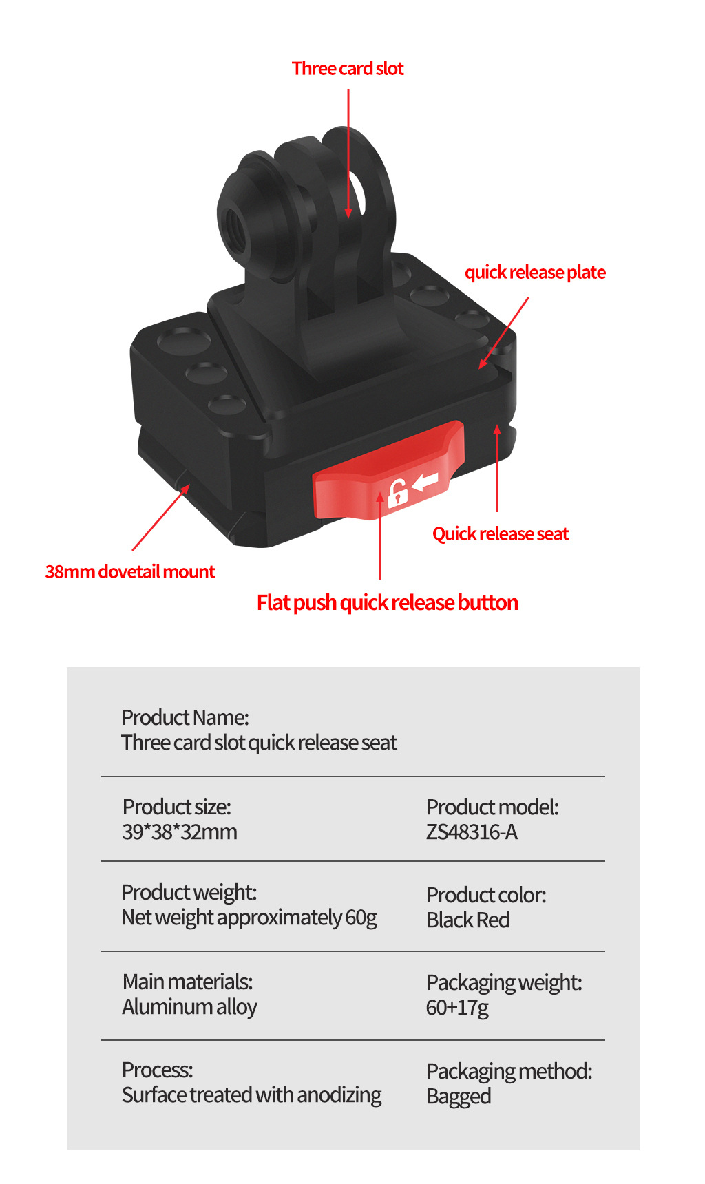 업그레이드 된 3 카드 미니 빠른 설치 좌석 V-포트 빠른 설치 빠른 출시 PTZ 알루미늄 합금 3 카드 슬롯 빠른 설치 플레이트