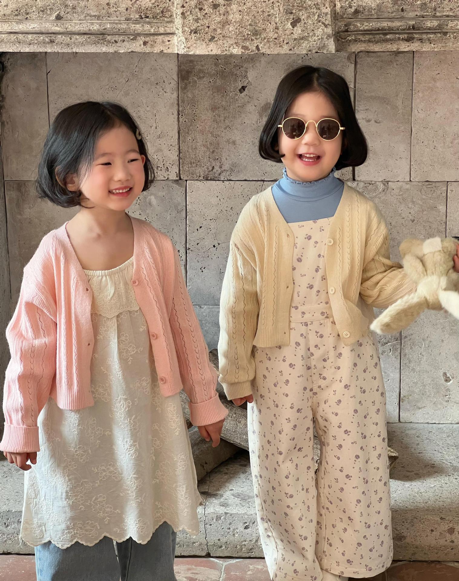 뾰족한 달걀 한국 아동복 2024 봄 새 소녀 코트 단색 니트 스웨터 카디건 짧은 얇은스토어 가기