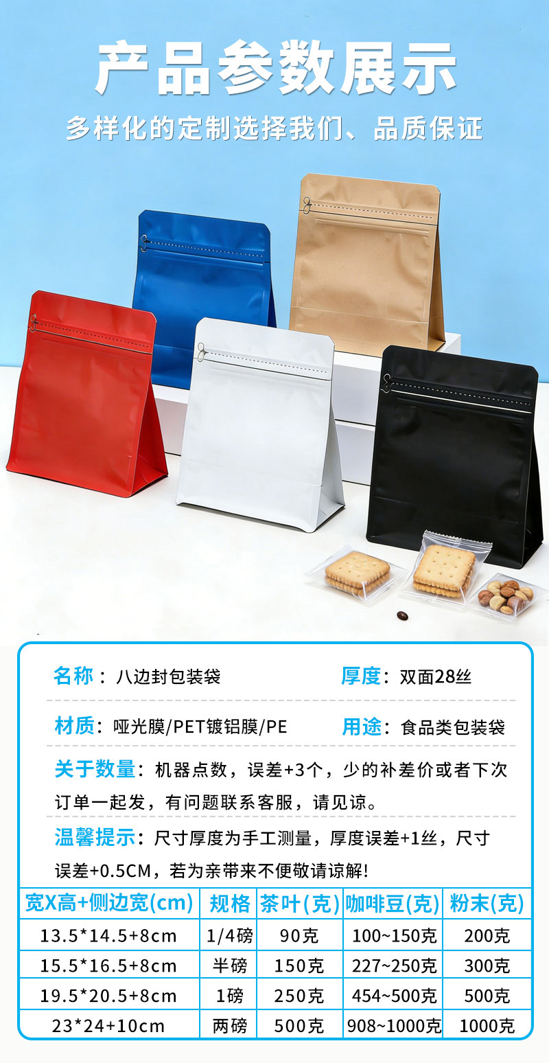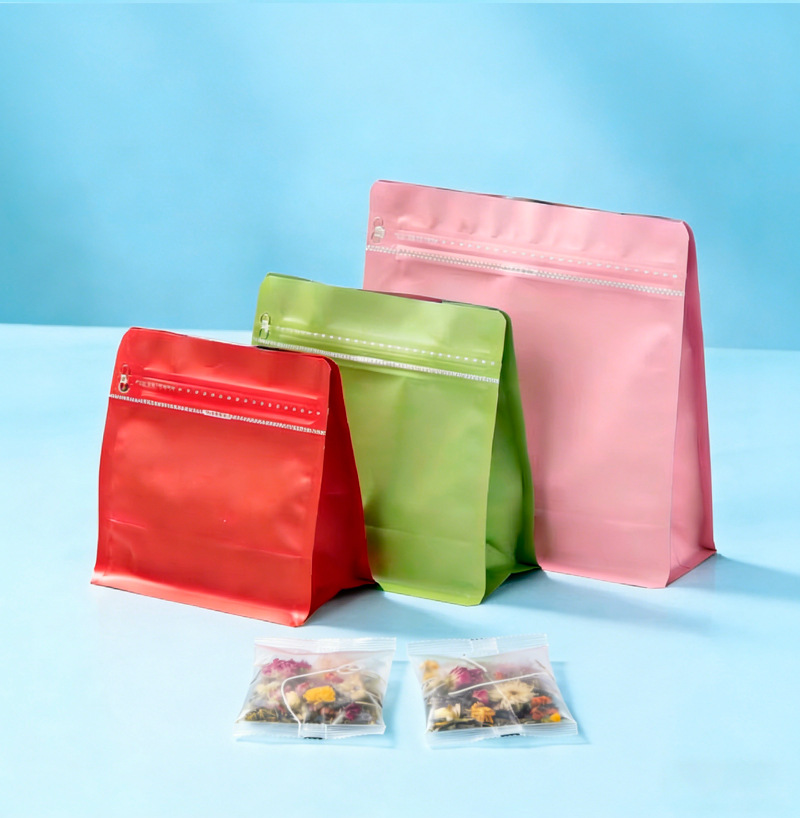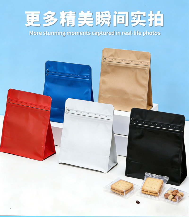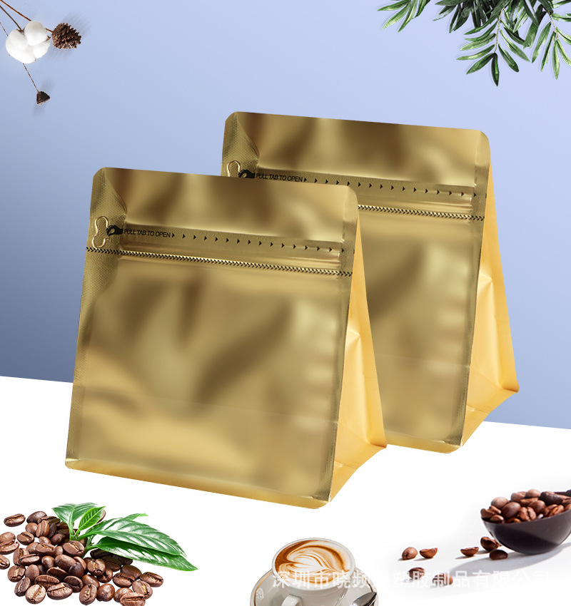 8면 밀봉 식품 포장 백, 컬러 알루미늄 도금 공기 밸브 차 자체 밀봉 알루미늄 호일 백, 방습 스낵 자립 밀봉 백스토어 가기