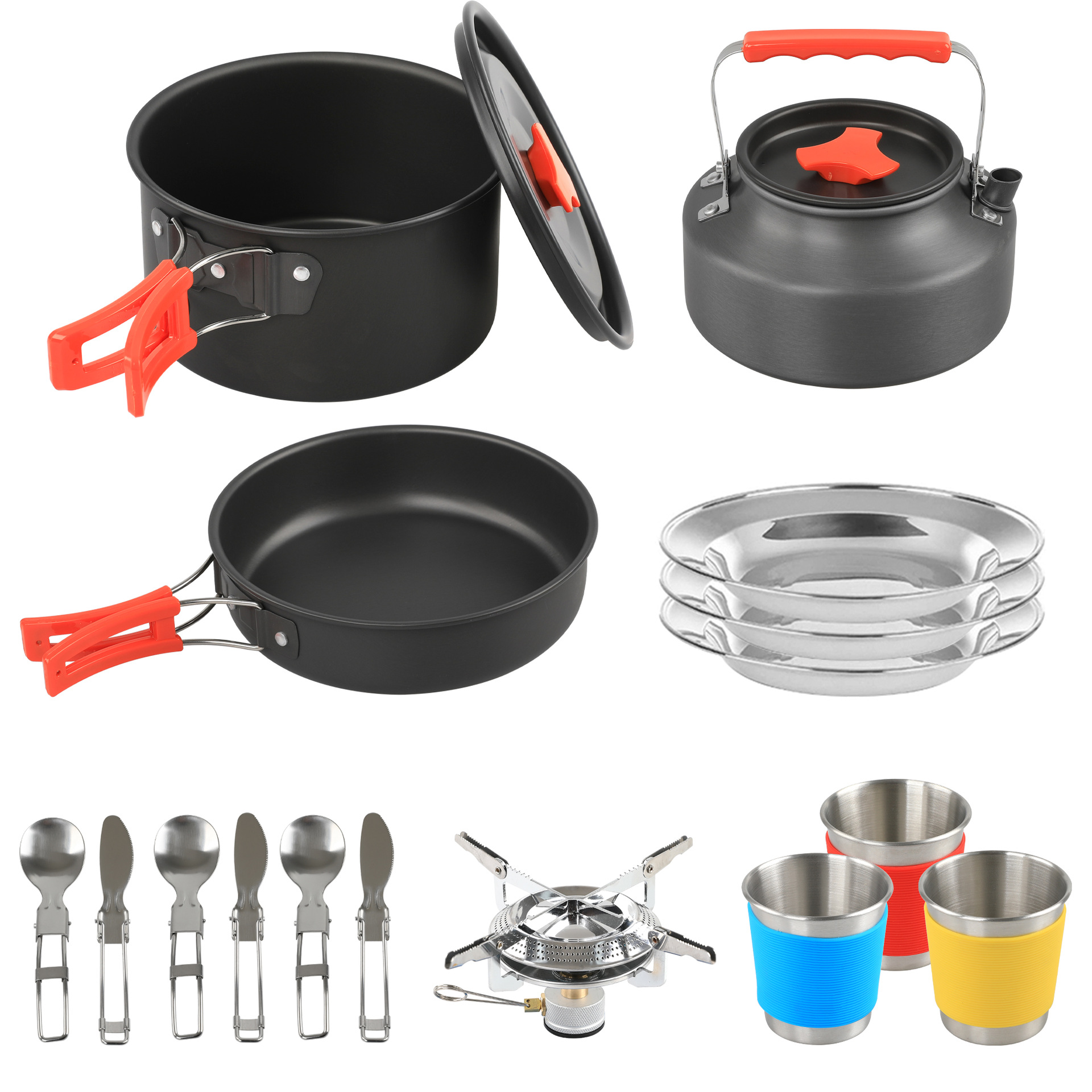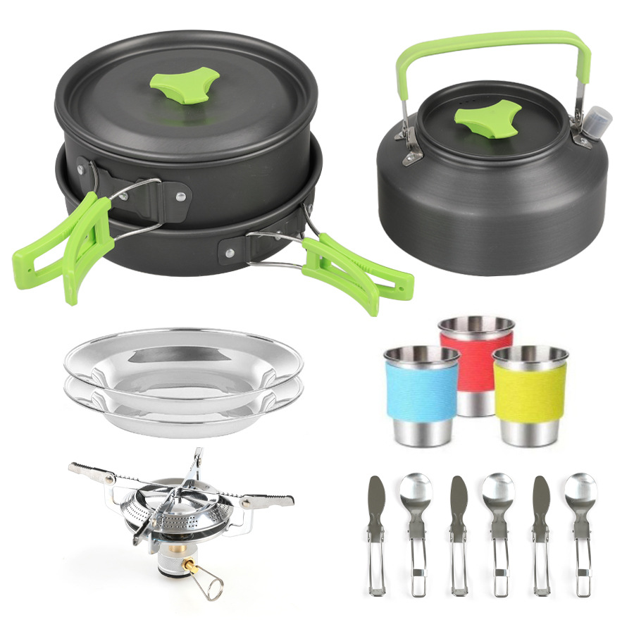 야외 냄비 세트 조합 310 세트 냄비 접시 스토브 스테인레스 스틸 컵 및 컵 세트 * 3 식기 2 피스 세트