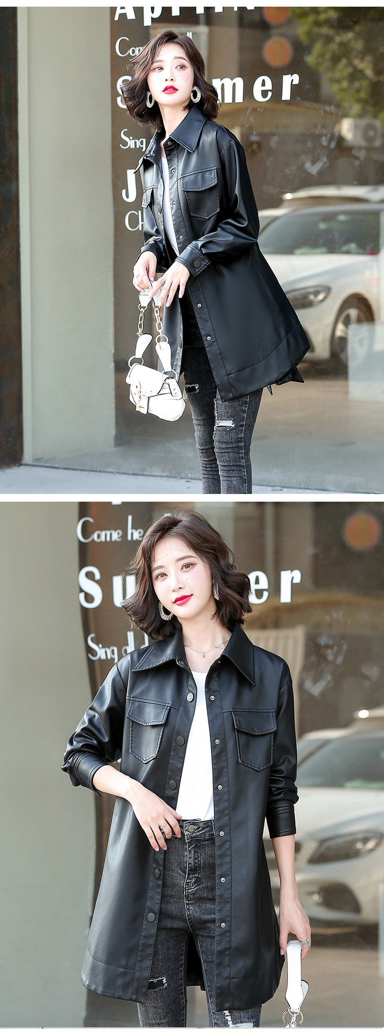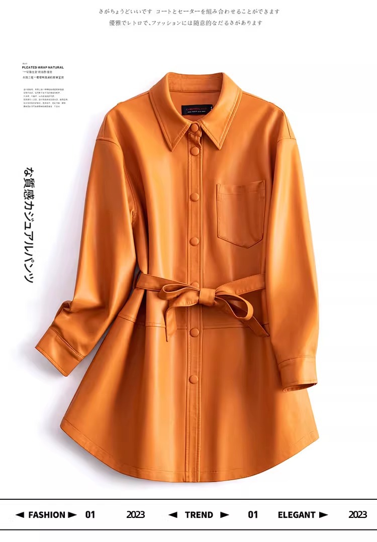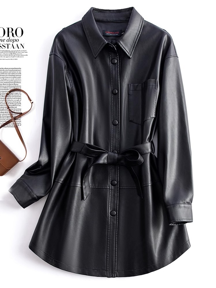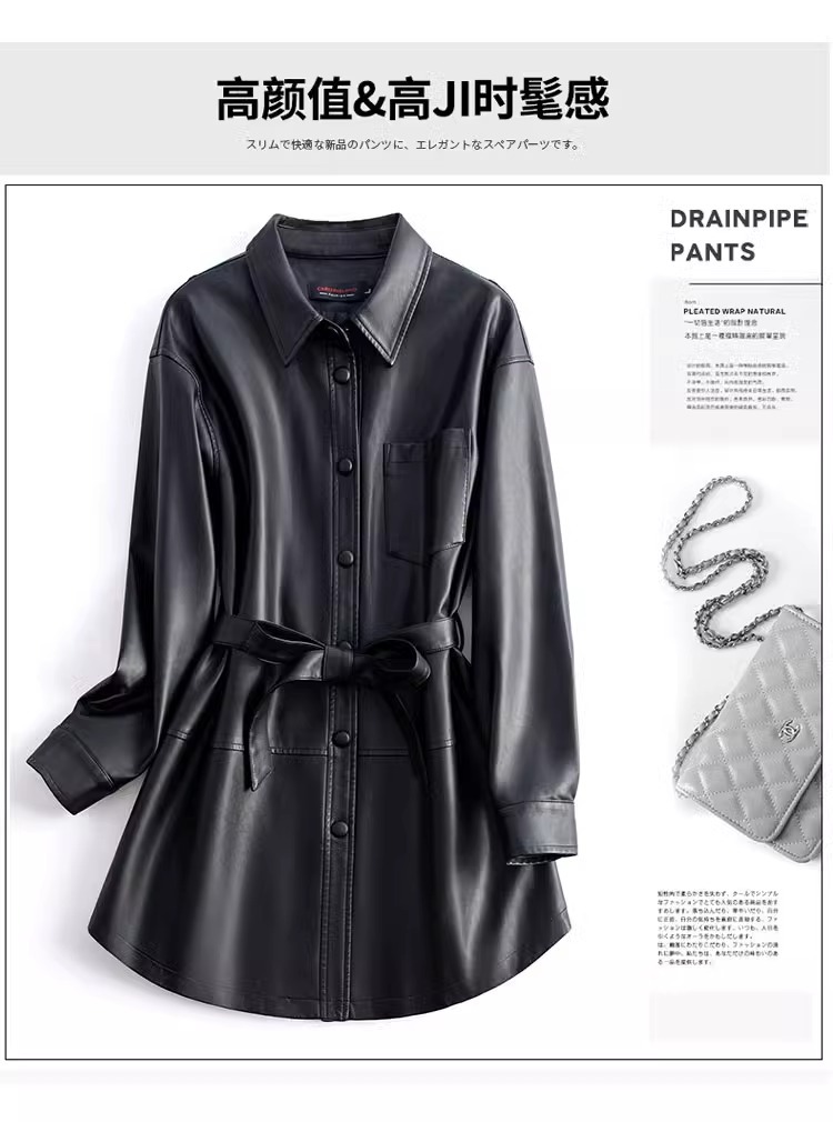 양미 같은 스타일의 양모 코트 여성 진짜 가죽 코트를 싫어하는 여성 중간 길이의 캐주얼 복고풍 가죽 재킷 원피스 배달스토어 가기