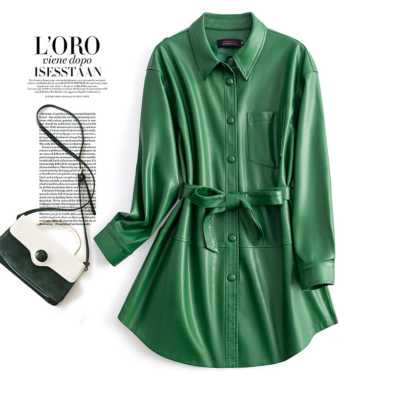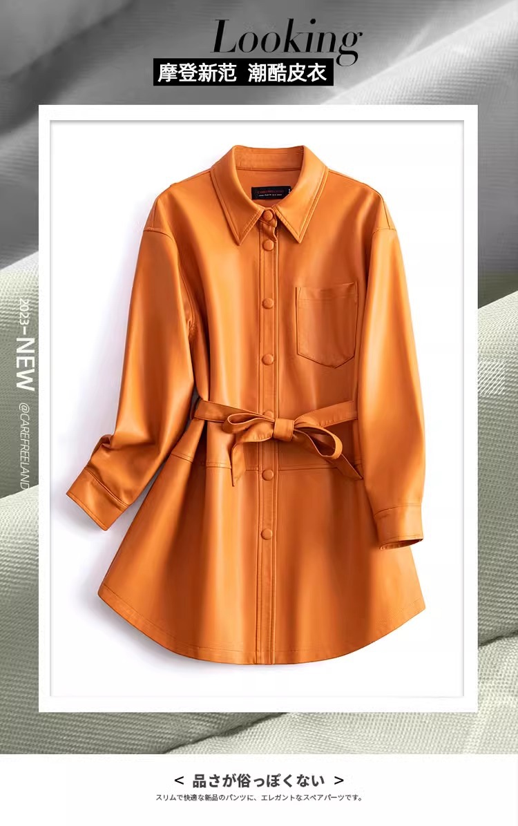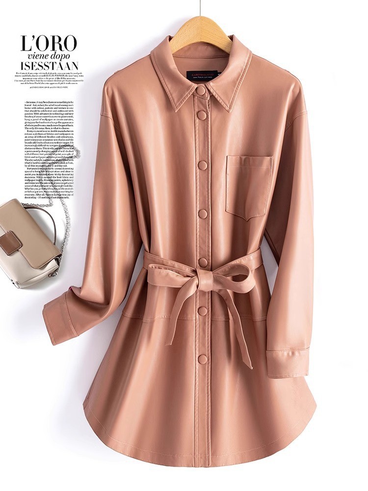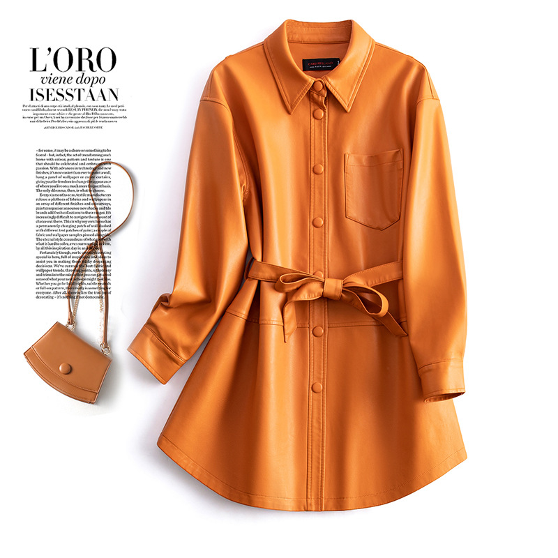 양미 같은 스타일의 양모 코트 여성 진짜 가죽 코트를 싫어하는 여성 중간 길이의 캐주얼 복고풍 가죽 재킷 원피스 배달