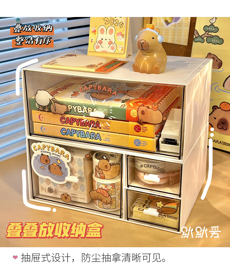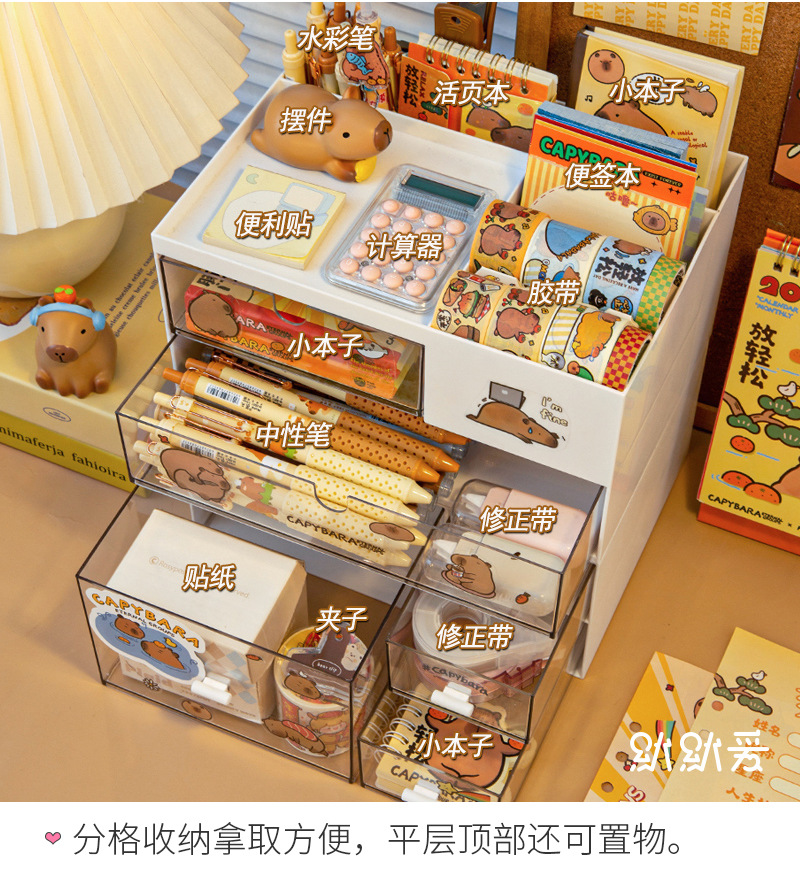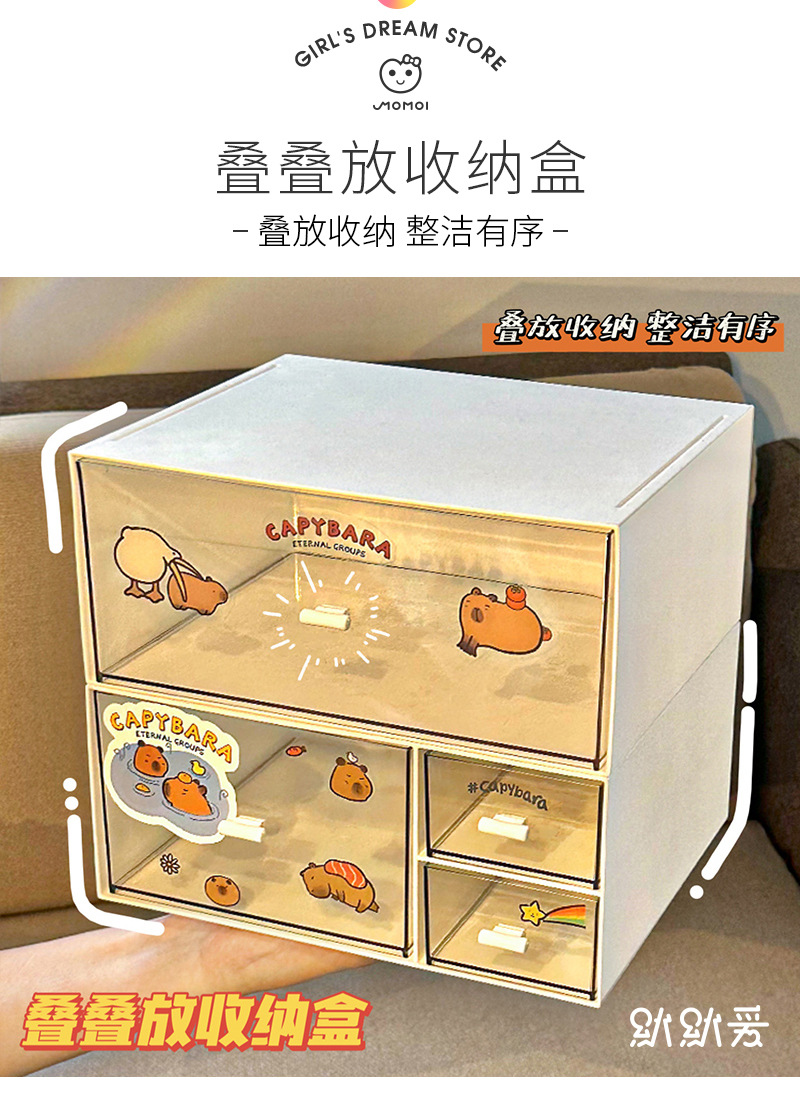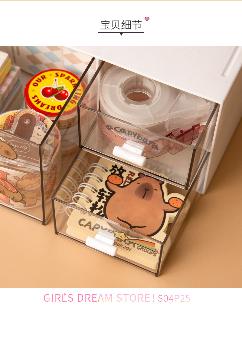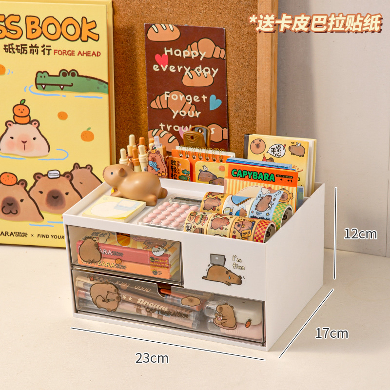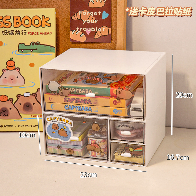 Capabala 데스크탑 서랍 보관 상자 직사각형 대용량 기숙사 책상 다기능 구획 보관 랙스토어 가기