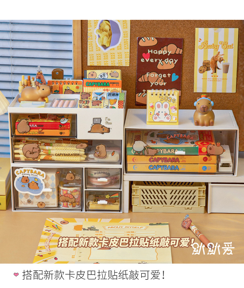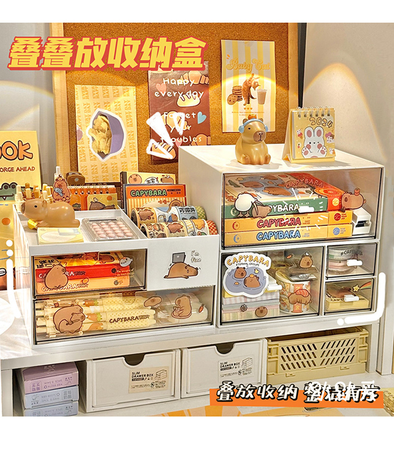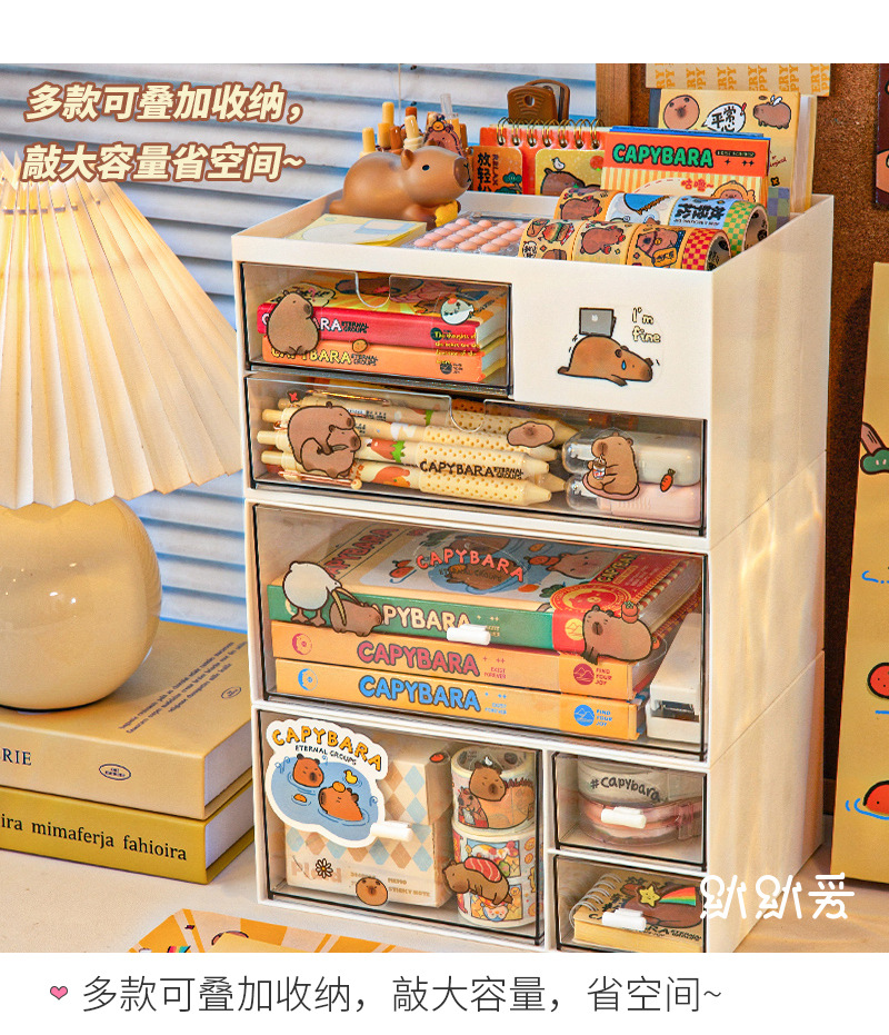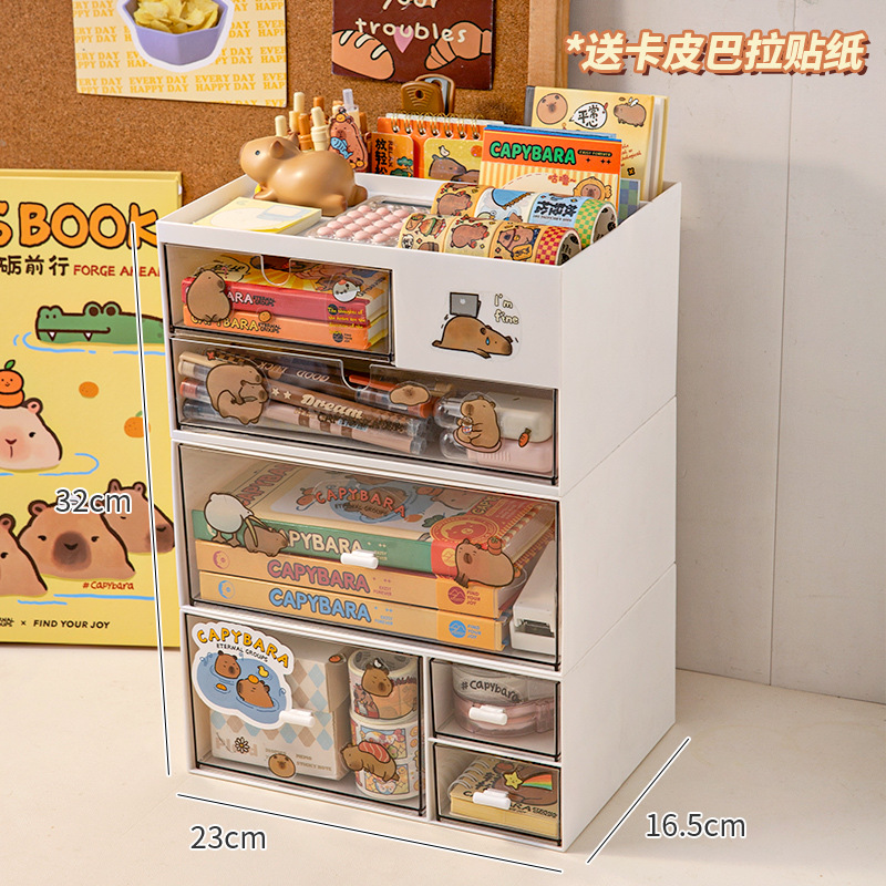Capabala 데스크탑 서랍 보관 상자 직사각형 대용량 기숙사 책상 다기능 구획 보관 랙