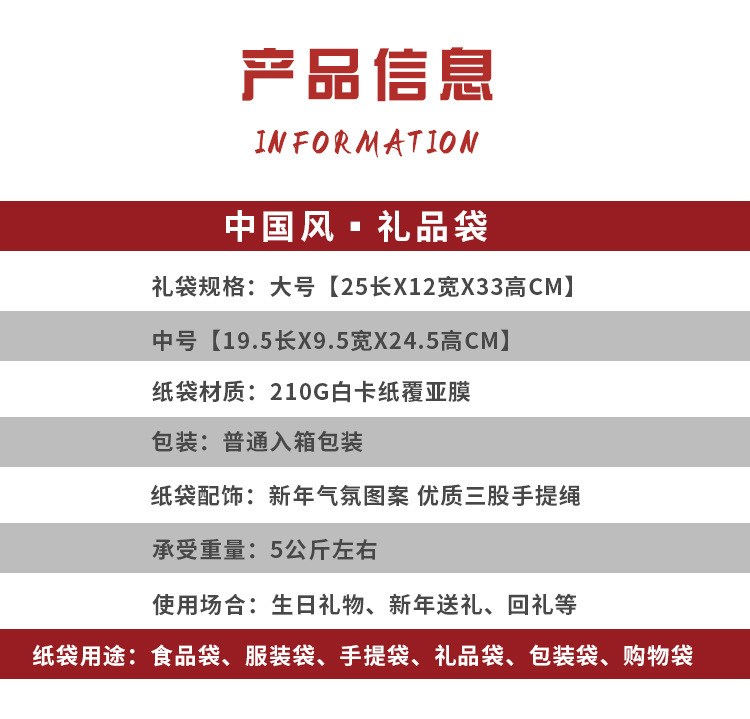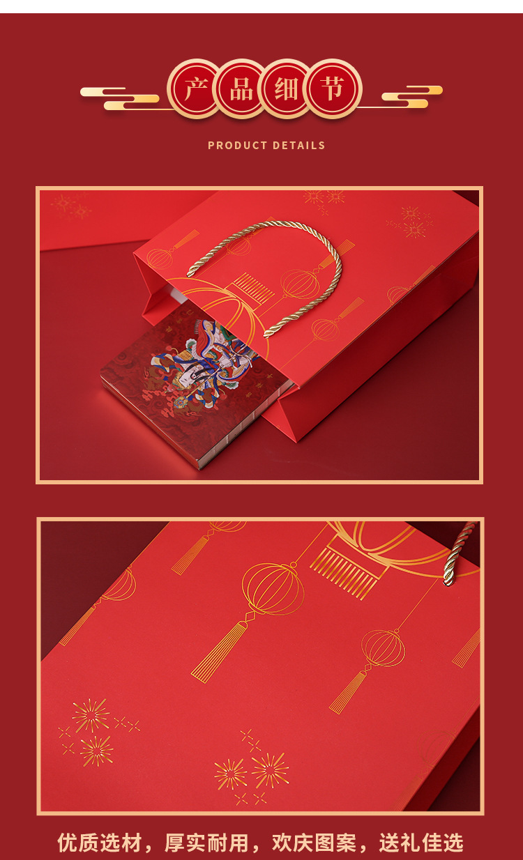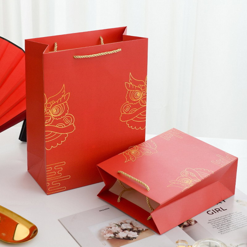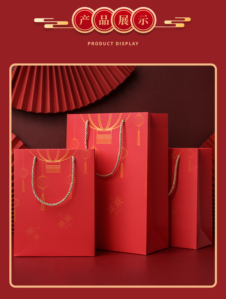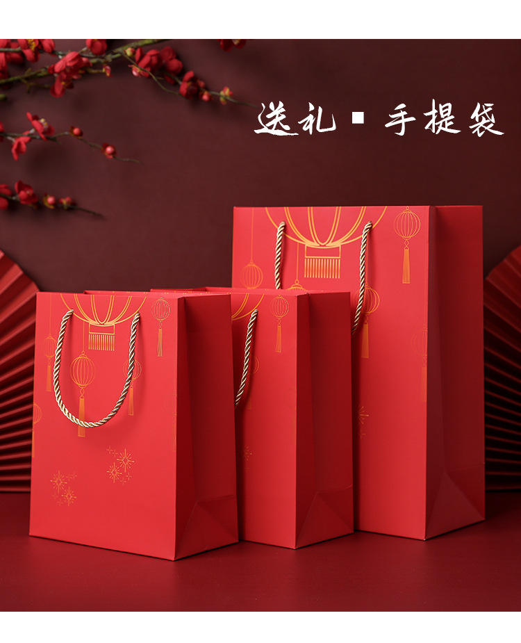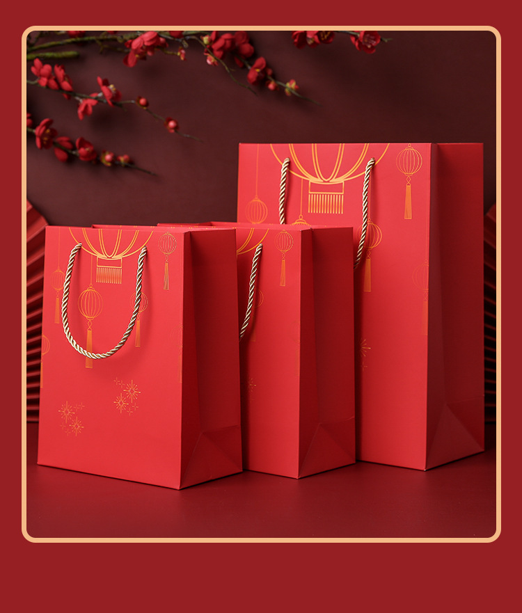 밝은 빨간색 흰색 판지 행운의 가방 생일 선물 가방 선물 핸드백 손 선물 종이 가방 중국 스타일 쇼핑 가방