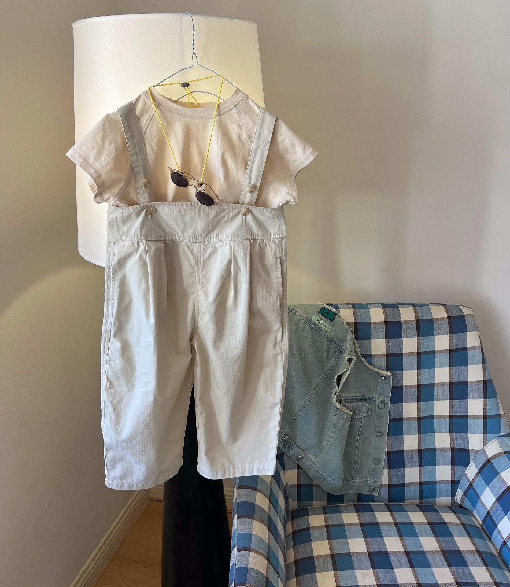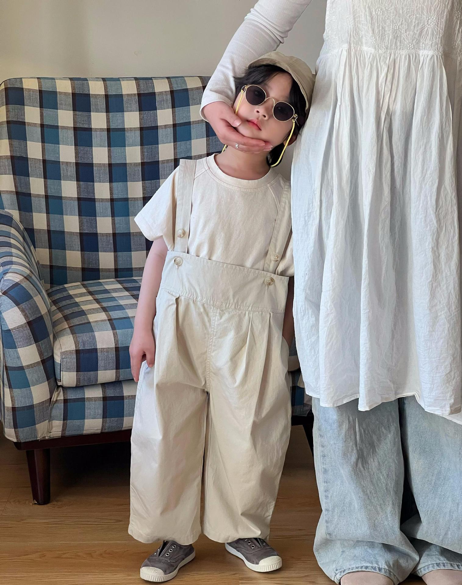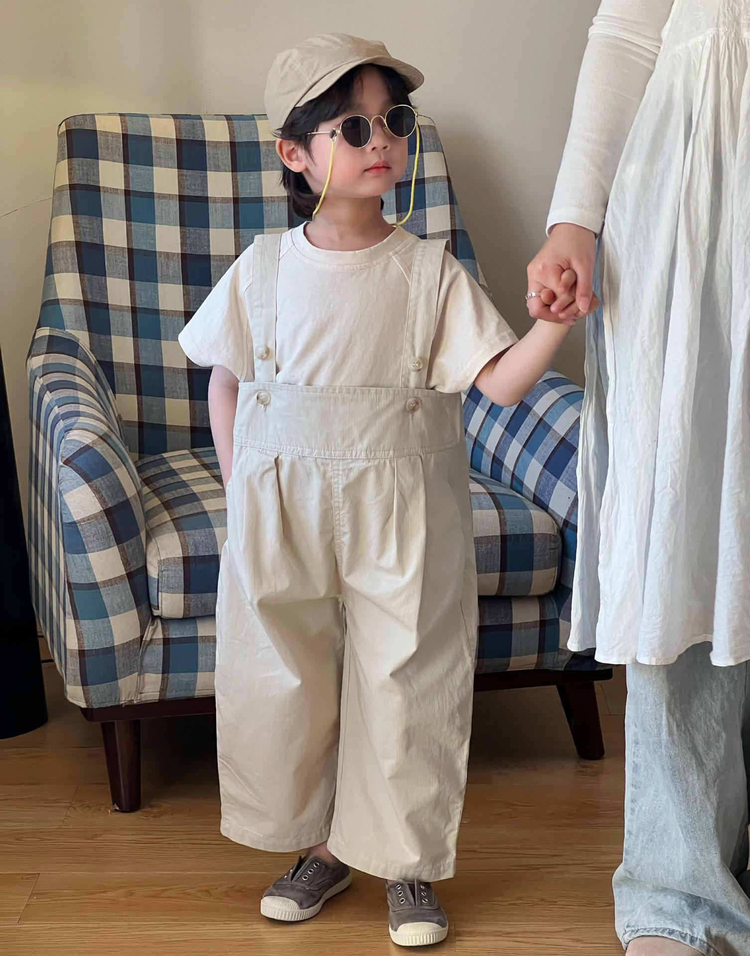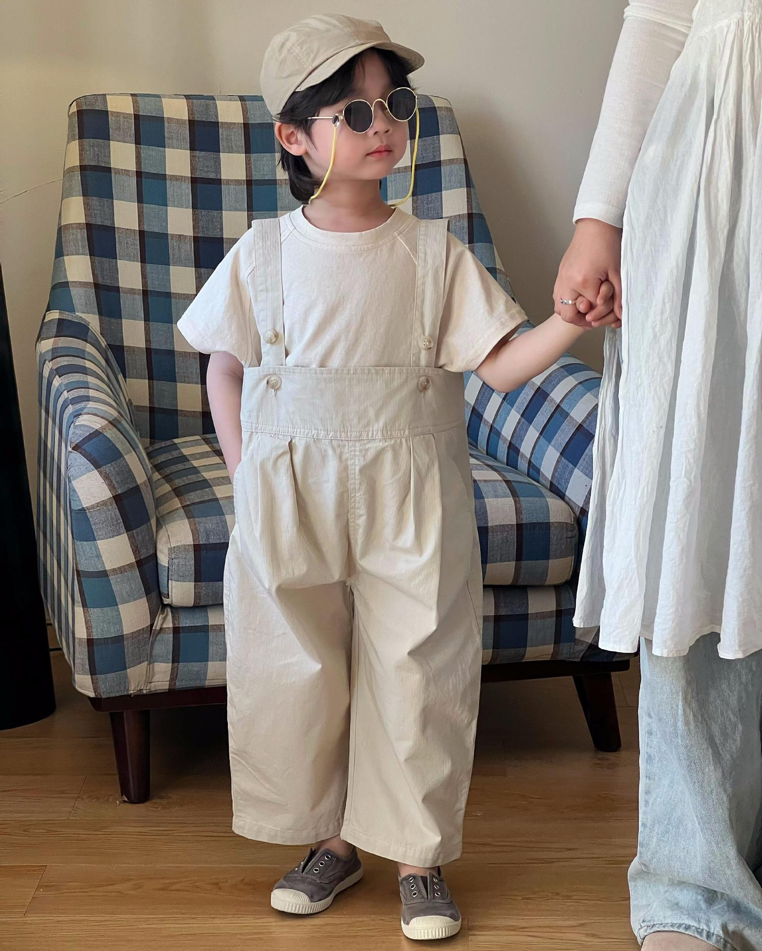 뾰족한 달걀 한국식 아동복 2024 봄 새 소년 소녀 어린이 바지 베이지 색 단색 서스펜더 바지스토어 가기