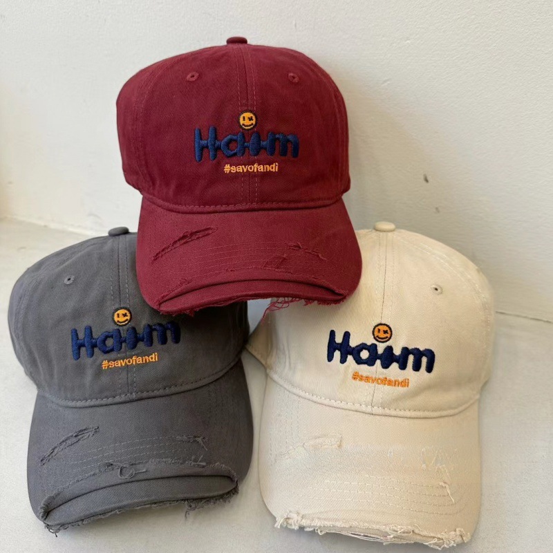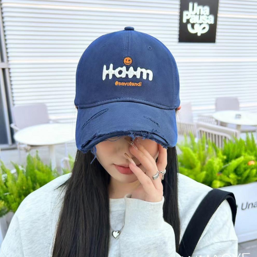 Yiyi 한국식 편지 자수 야구 모자 남자 찢어진 큰 챙이 여자 봄과 여름 올 매치 태양 모자 정점 모자스토어 가기