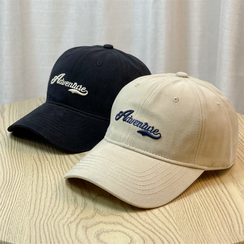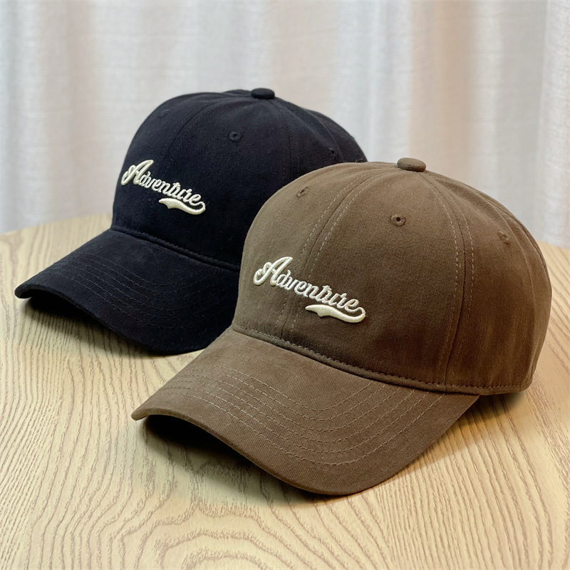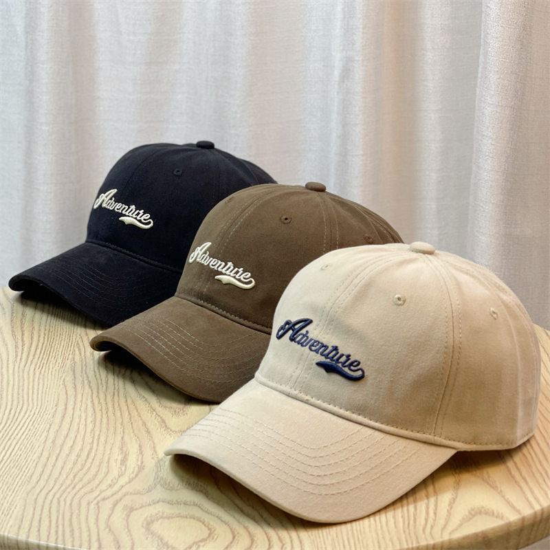 Yi Yi Yi 일본식 가을과 겨울 빈티지 솔질 야구 모자 남성 캐주얼 자수 소프트 탑 피크 캡 큰 머리 얼굴 모양의 작은 태양 방지