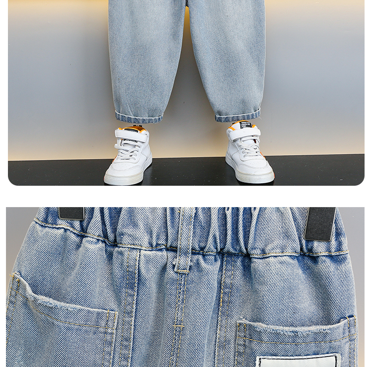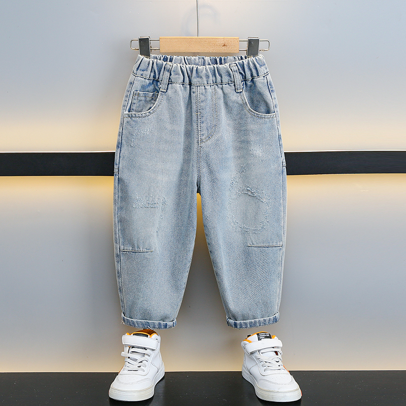 소년 청바지 봄 의류 2025 새로운 잘 생긴 아동복 밝은 색상 바지 아기 소년 봄, 가을 얇은 캐주얼 바지스토어 가기