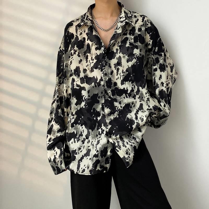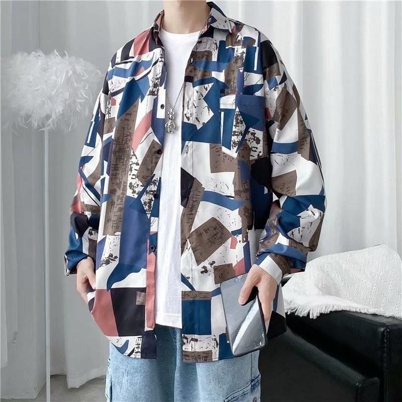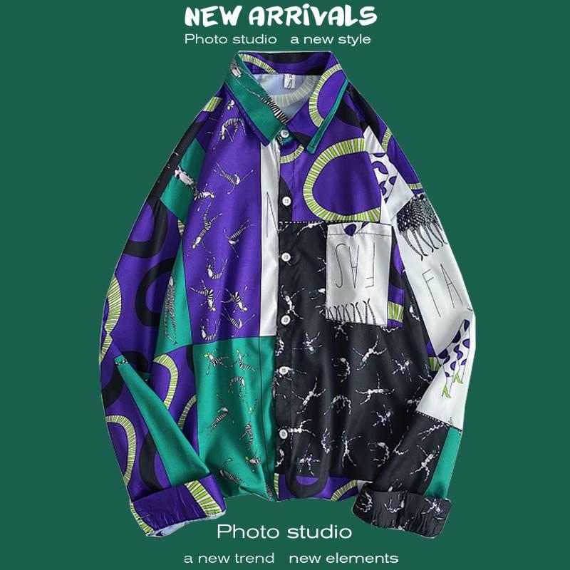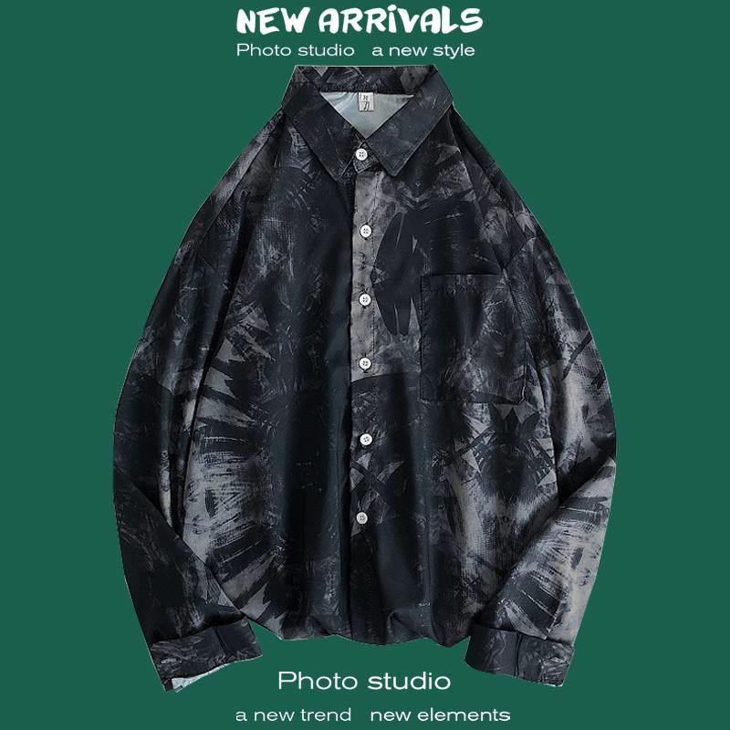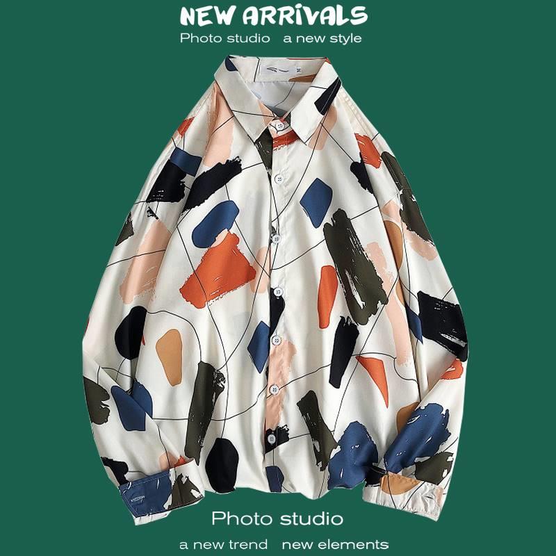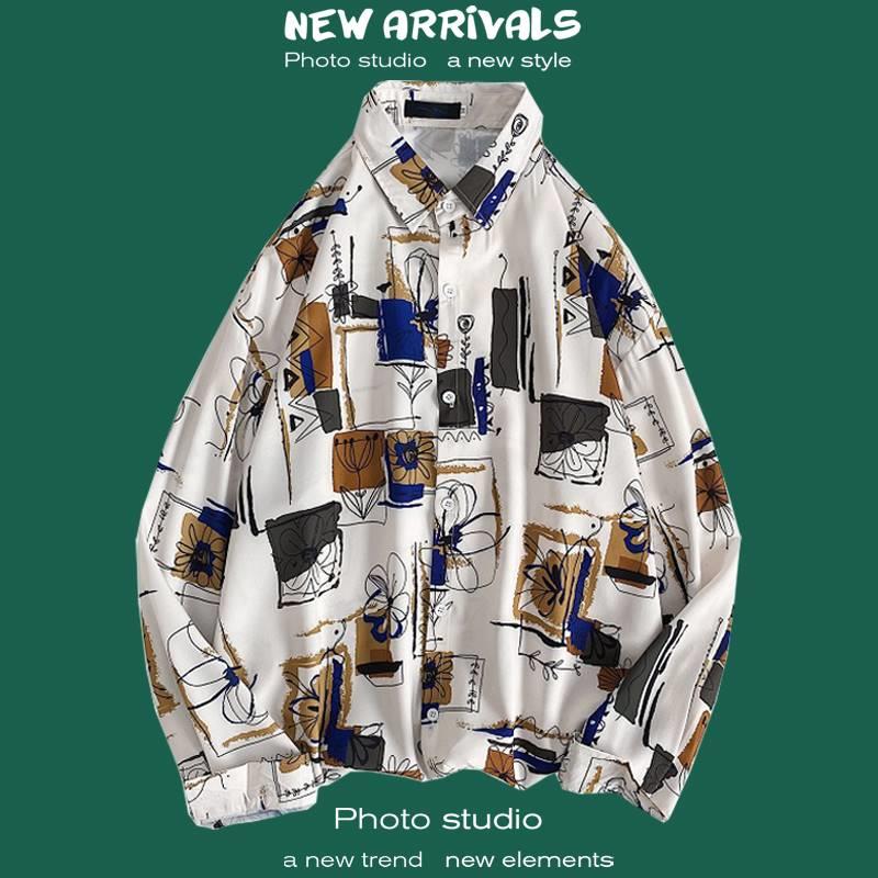 가을 하이 엔드 드래핑 긴팔 셔츠 남자 한국식 Ins 패셔너블 러피안 핸섬 작은 트렌디 인터넷 연예인 홍콩 스타일 느슨한 꽃 셔츠스토어 가기