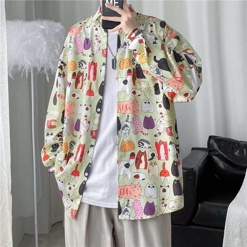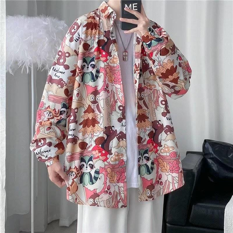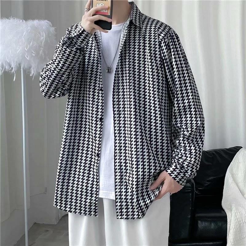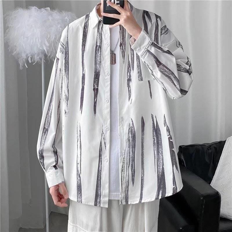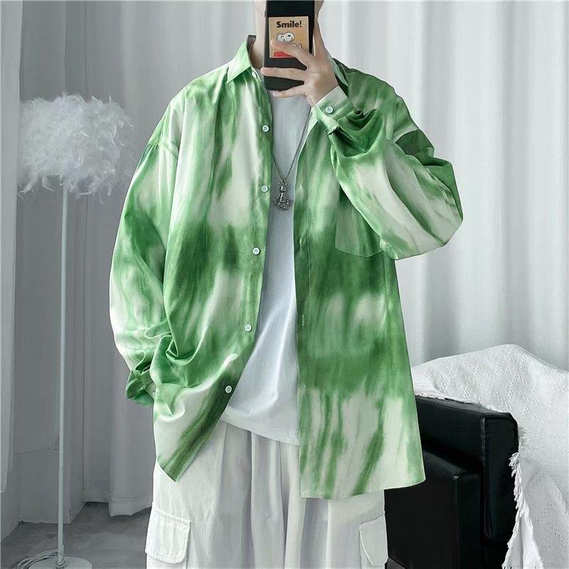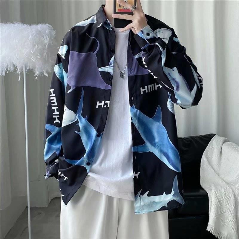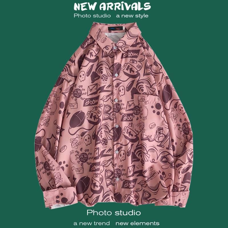 가을 하이 엔드 드래핑 긴팔 셔츠 남자 한국식 Ins 패셔너블 러피안 핸섬 작은 트렌디 인터넷 연예인 홍콩 스타일 느슨한 꽃 셔츠스토어 가기