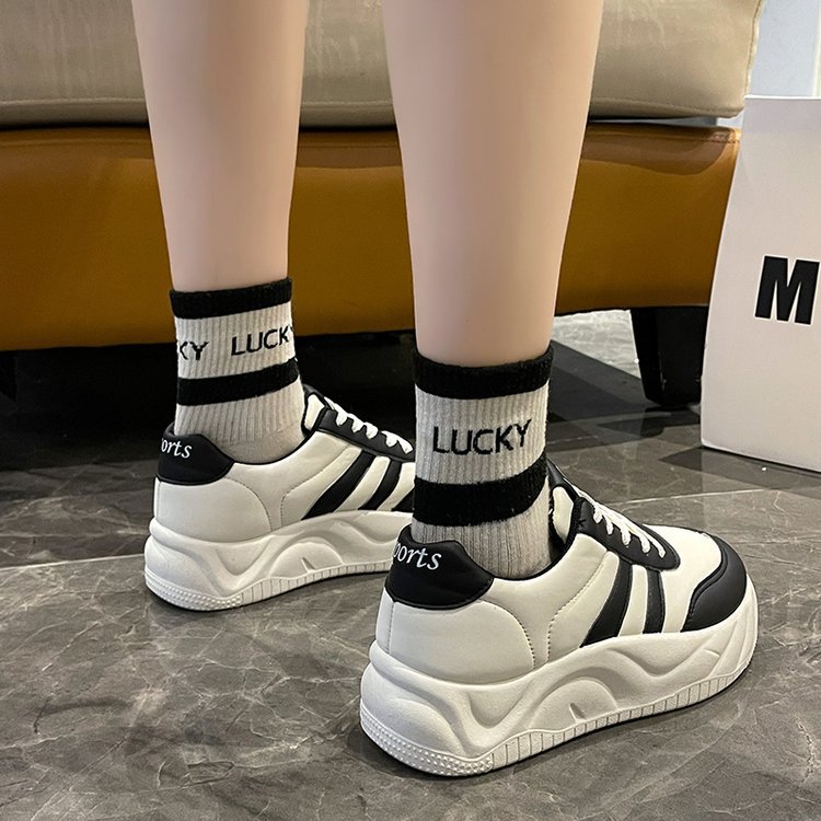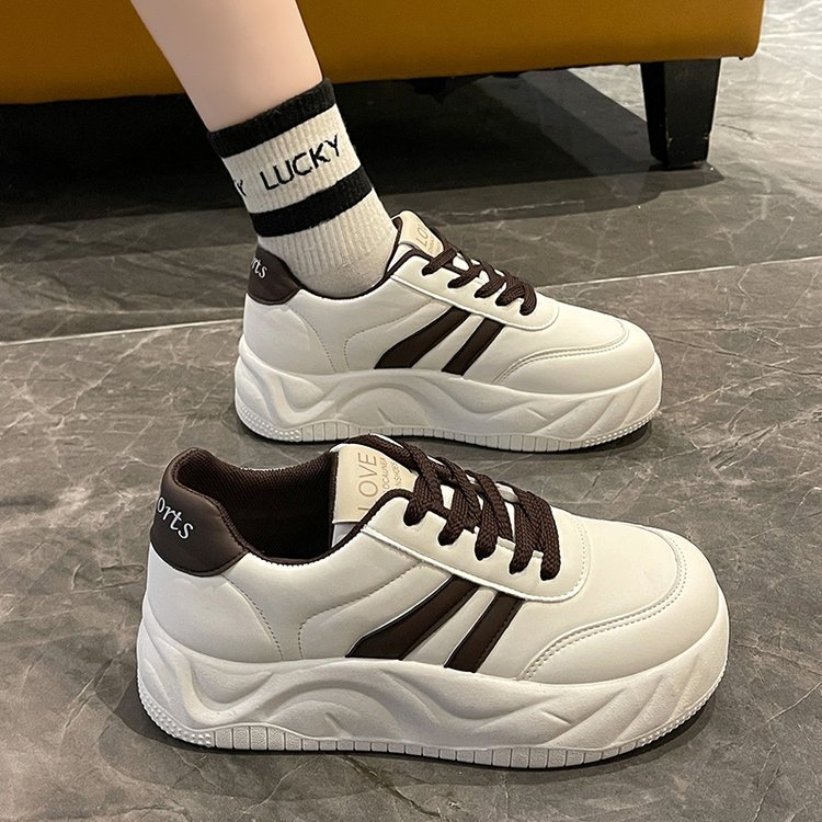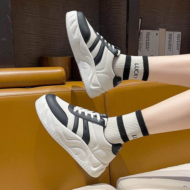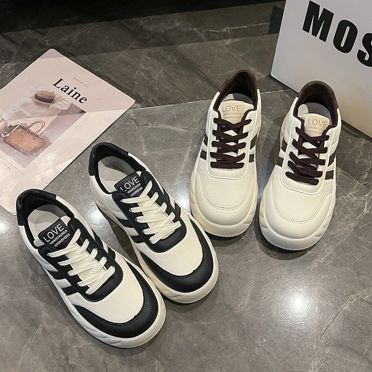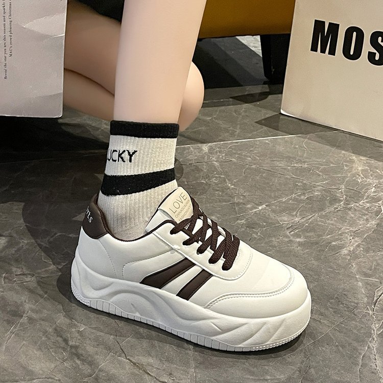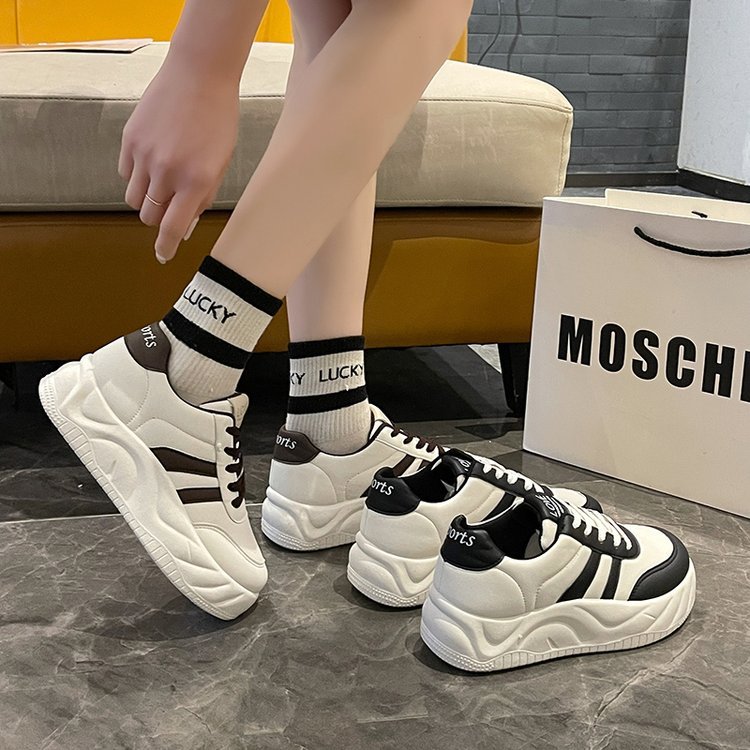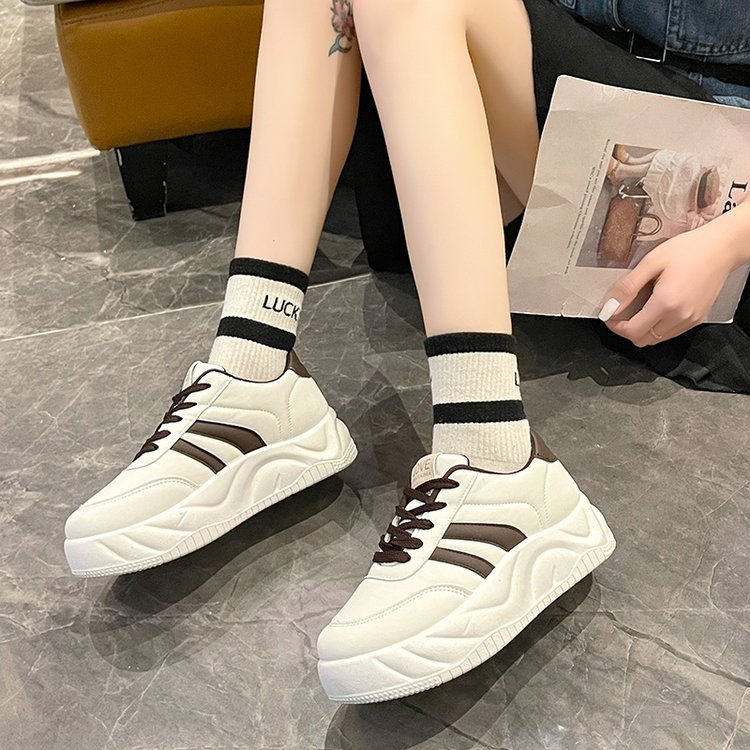 여성의 두꺼운 밑창 높이 증가 운동화 2024 봄과 가을 새로운 캐주얼 빵 신발 색상 일치 스포츠 흰색 신발스토어 가기