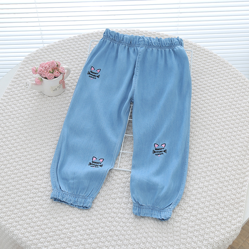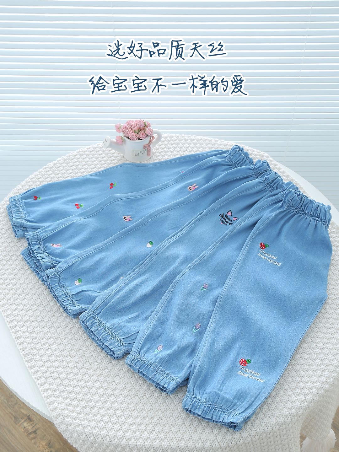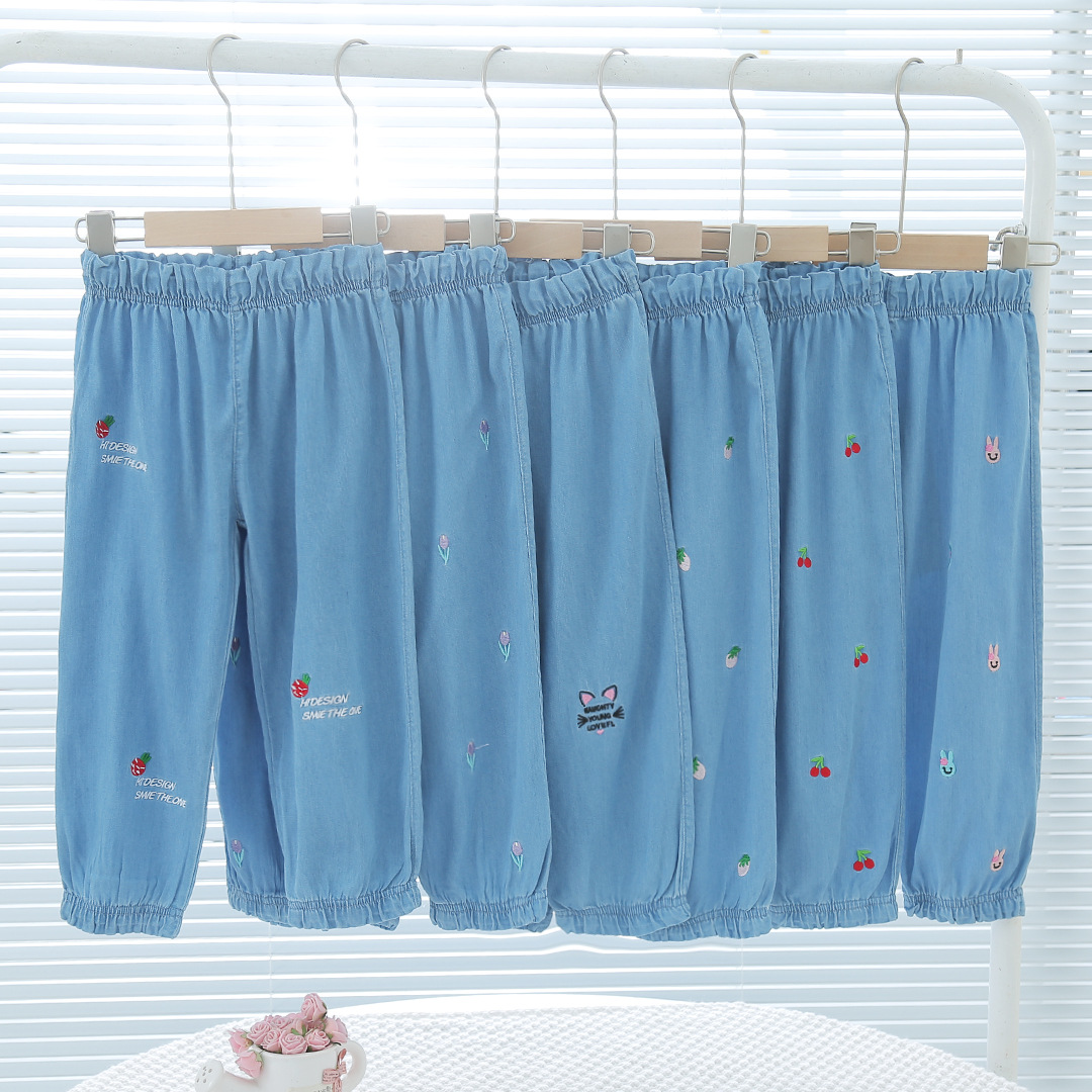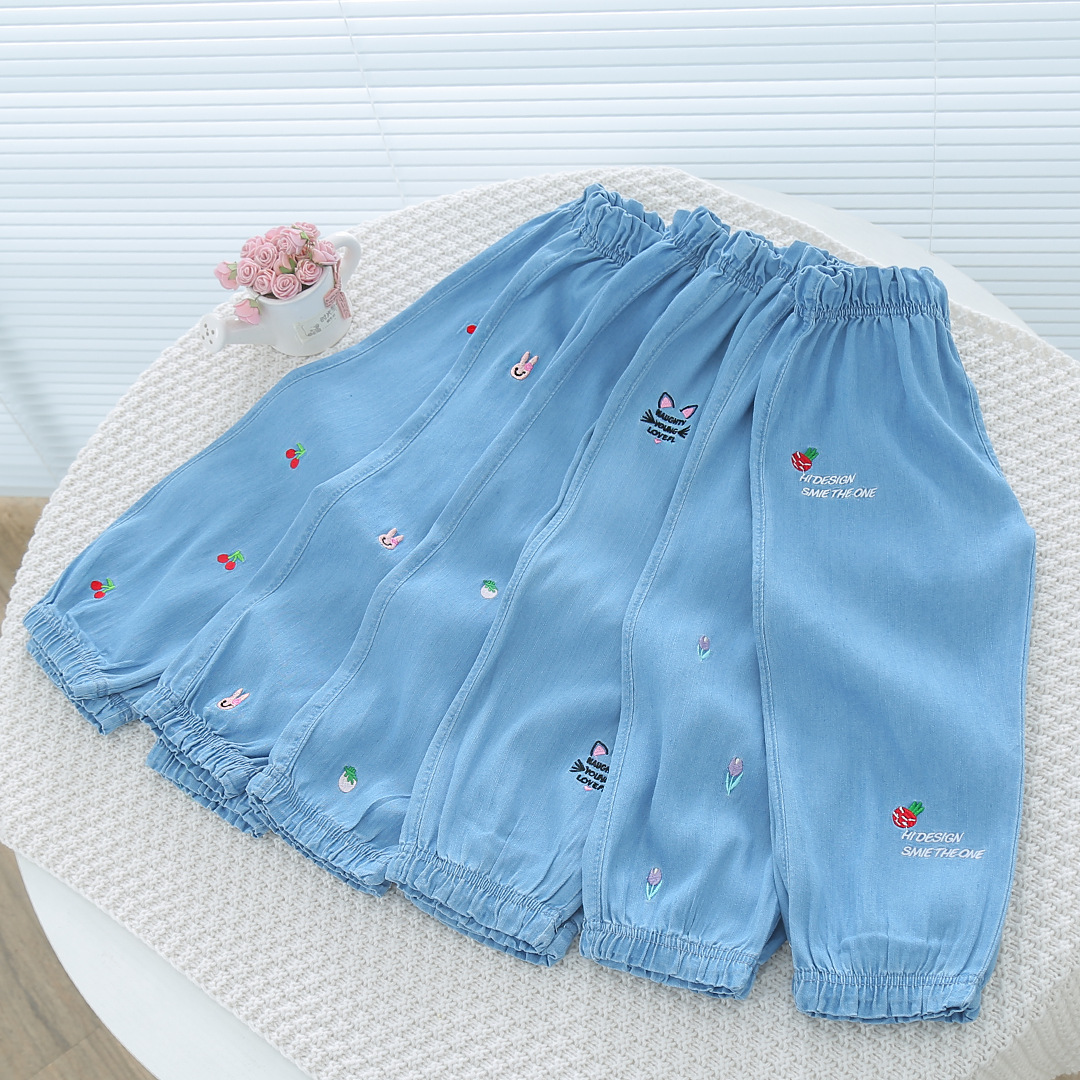 2024 년 새로운 여름 cuhk 소녀 전체 수 놓은 스트레치 텐셀 데님 모기 방지 바지 바지 바지스토어 가기