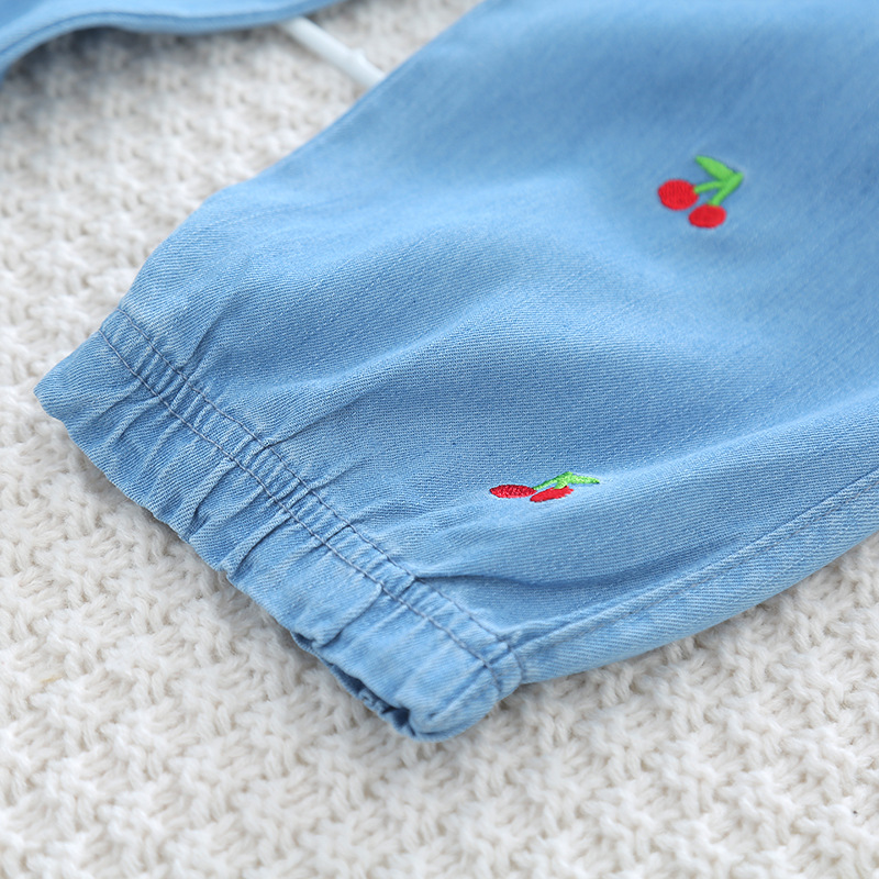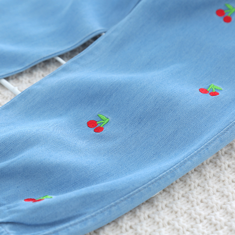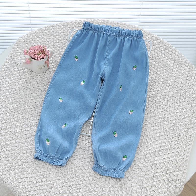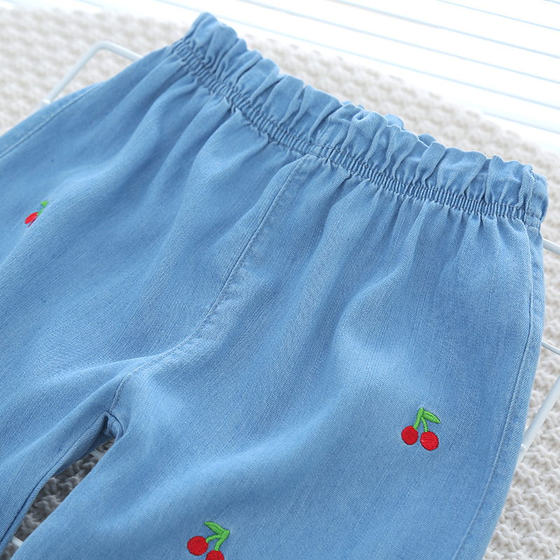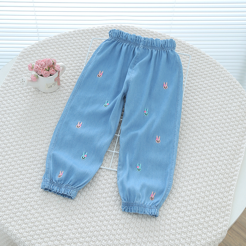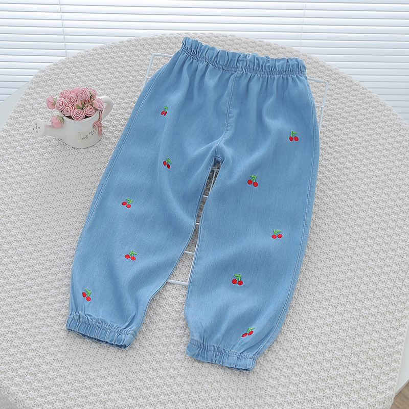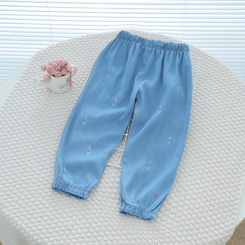 2024 년 새로운 여름 cuhk 소녀 전체 수 놓은 스트레치 텐셀 데님 모기 방지 바지 바지 바지스토어 가기