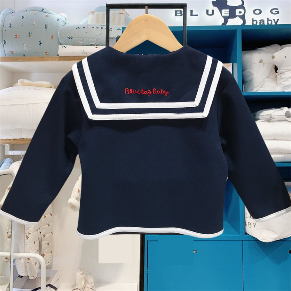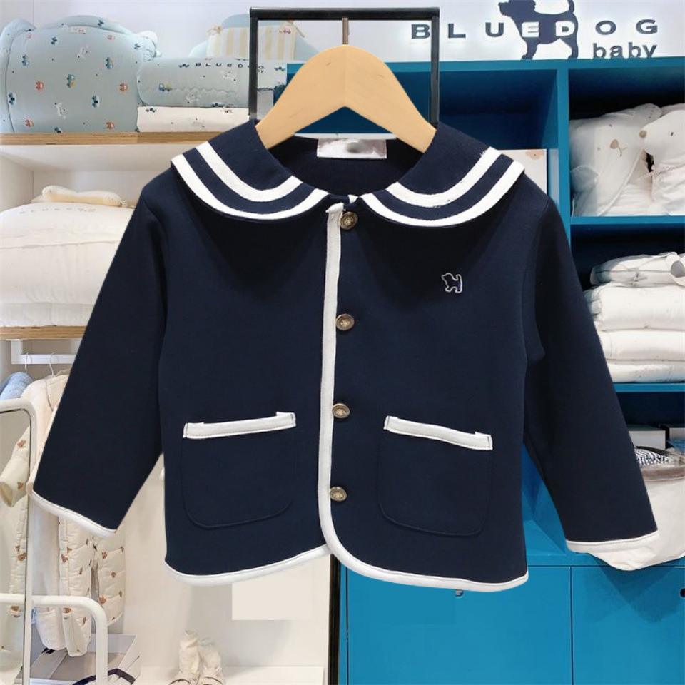 한국 스타일 아동복 원피스 가을 스타일 소년 소녀 네이비 칼라 긴팔 카디건 베이비 코트 MS421701