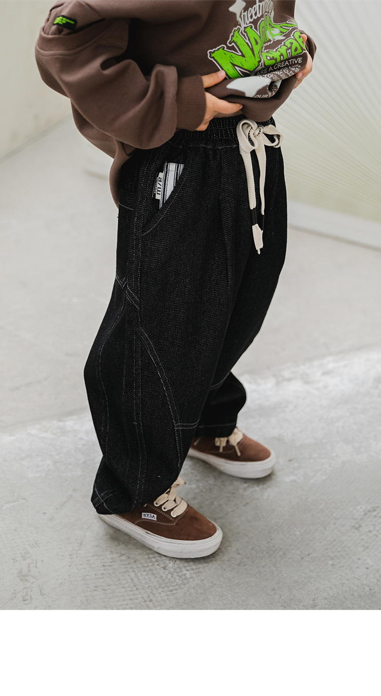 어린이 의류 소년 청바지 봄과 가을 2024 새로운 봄 소년 바지 봄 옷 어린이 외부 바지 트렌디 쿨스토어 가기