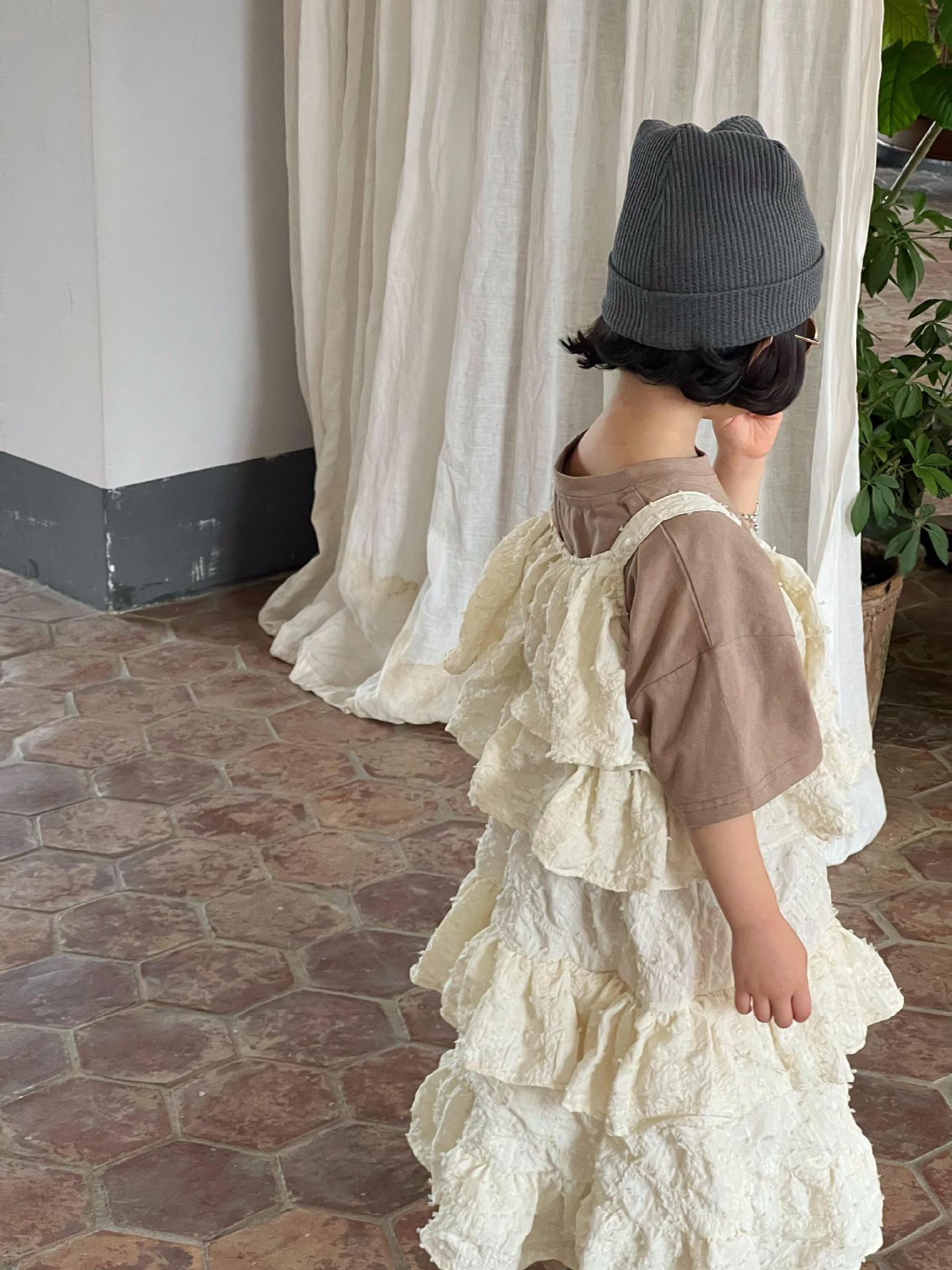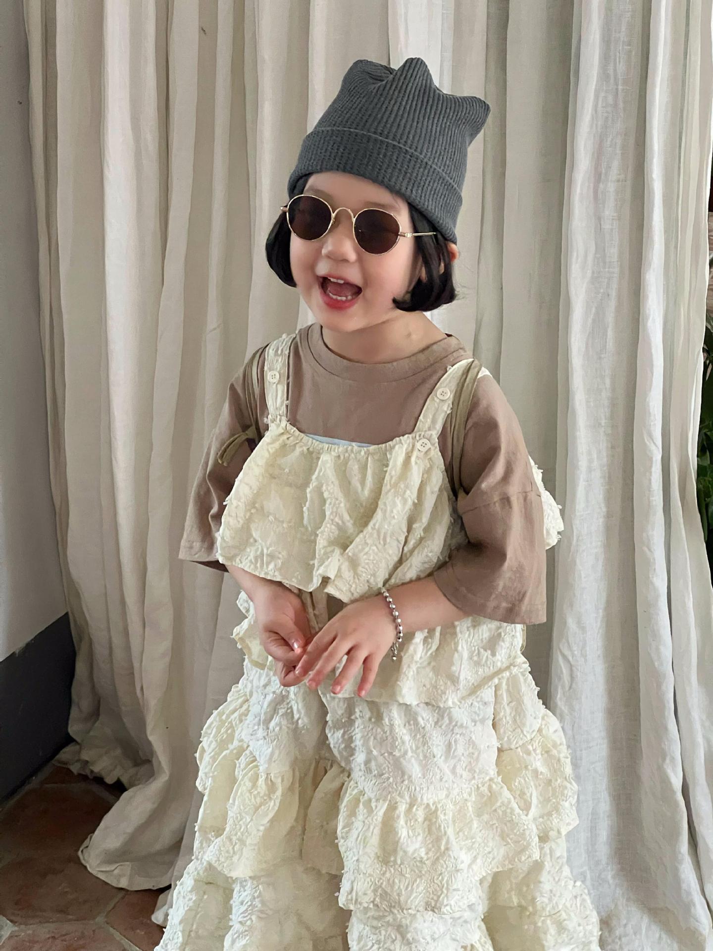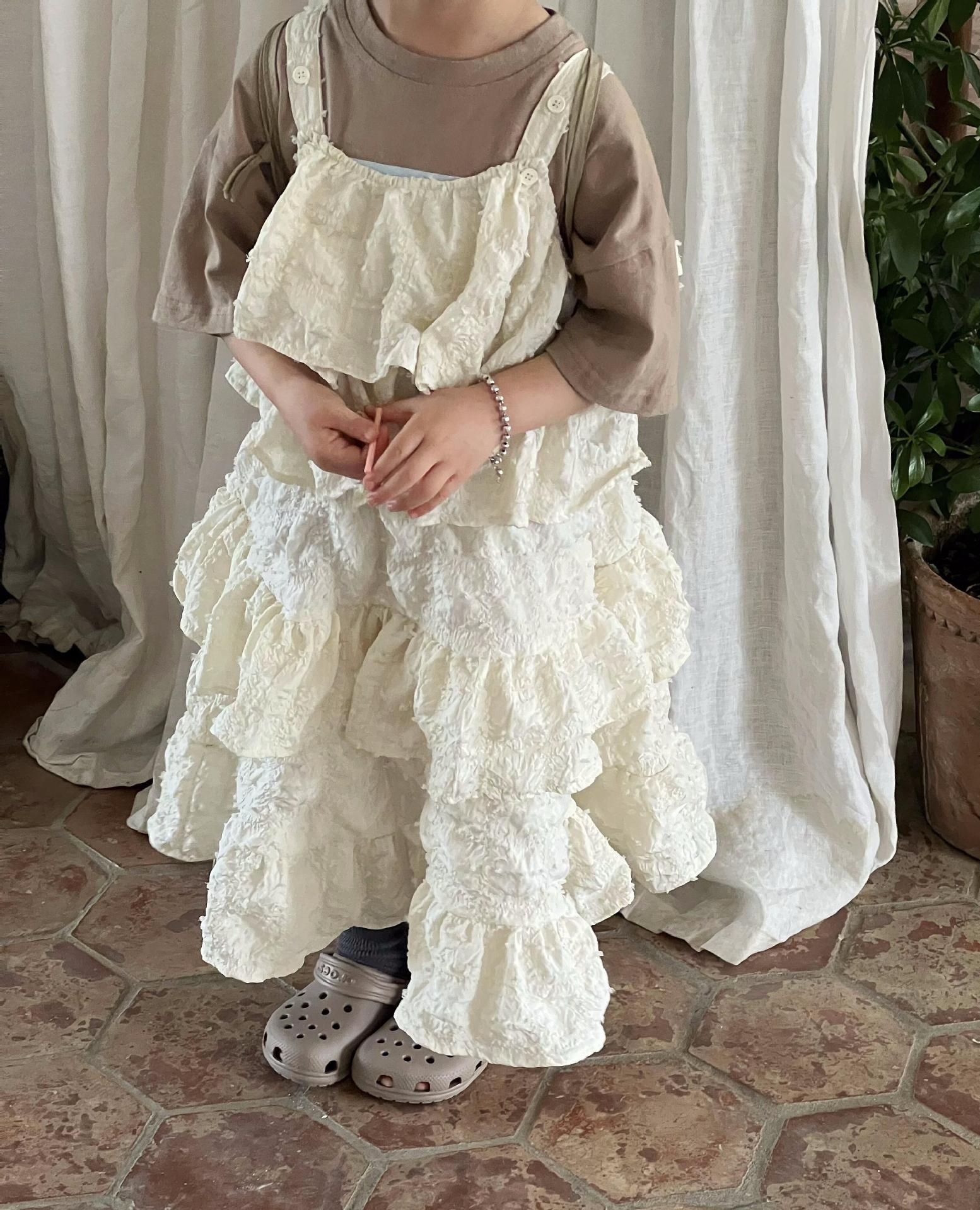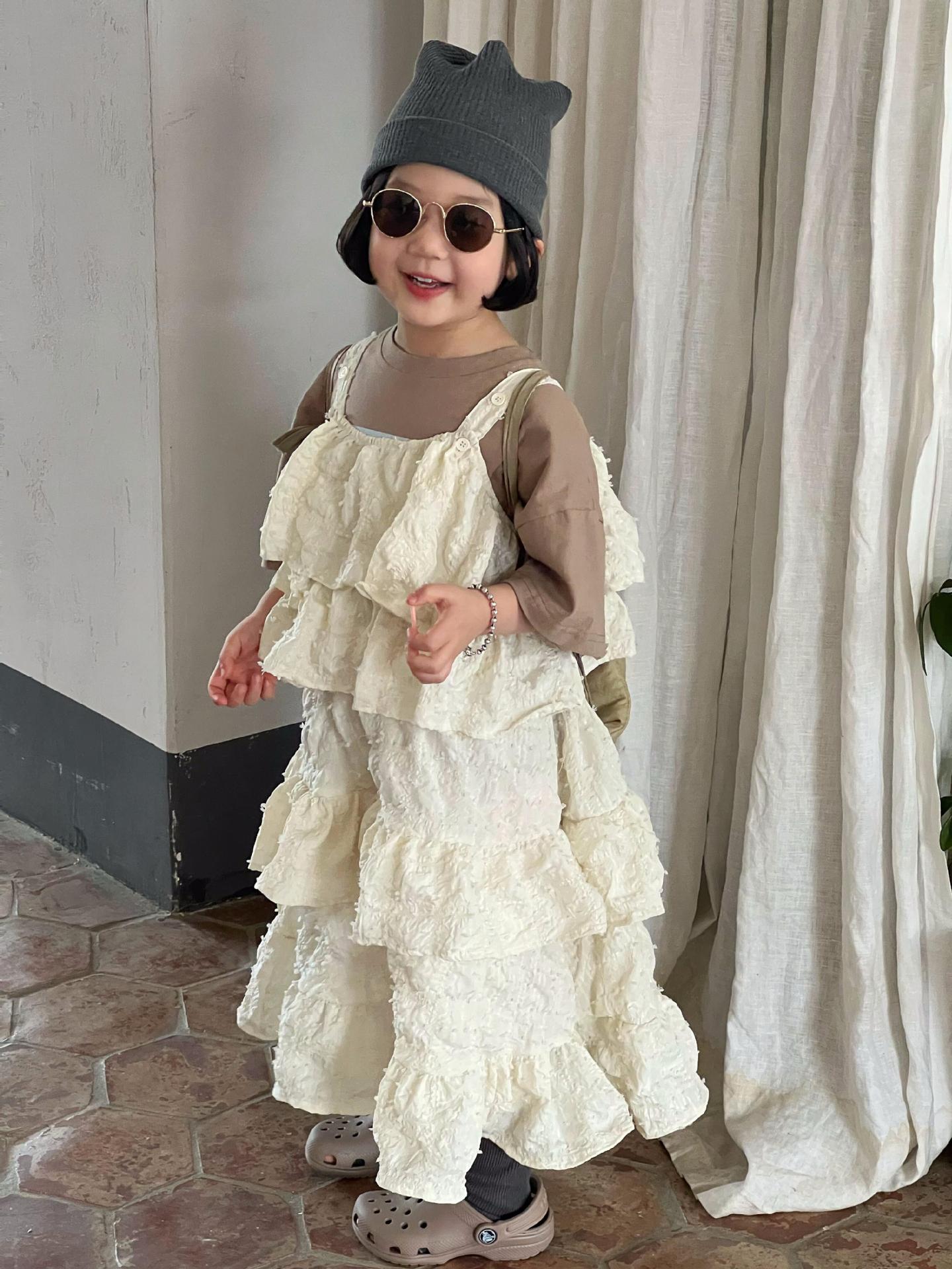 뾰족한 달걀 한국 아동복 2024 봄 새 소녀 원피스 아이보리 레이스 서스펜더 스커트 케이크 스커트스토어 가기