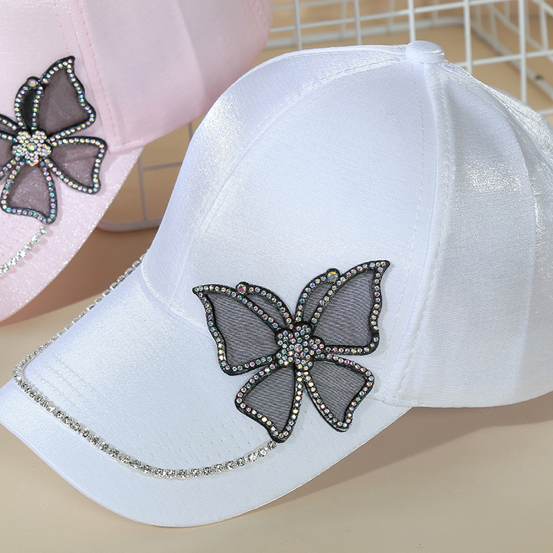 Yiyi 나비 모조 다이아몬드 야구 모자 통기성 태양 보호 야구 모자 유행 패션 정점 모자 한국식 얼굴 모양의 작은 태양 보호