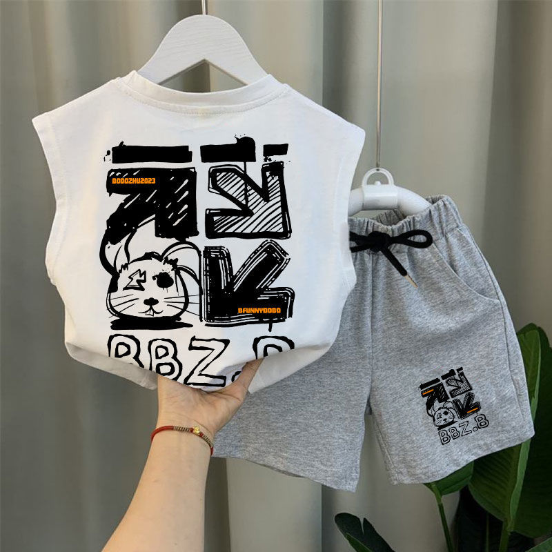 어린이 의류 소년 여름 옷 세트 어린이 조끼 2 조각 소매 티셔츠 코튼 느슨한 어린 소년의 여름 옷