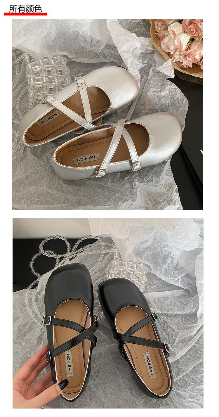여성을위한 레트로 프랑스 메리 제인 신발 2024 새로운 봄과 여름 패션 버클 로우 컷 라운드 토 플랫 신발스토어 가기
