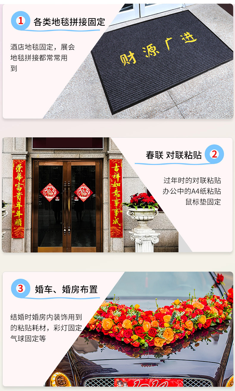 원활한 강한 양면 천 메쉬 양면 접착제 높은 점도 특수 접착 테이프 웨딩 레스토랑 장식 벽 카펫스토어 가기