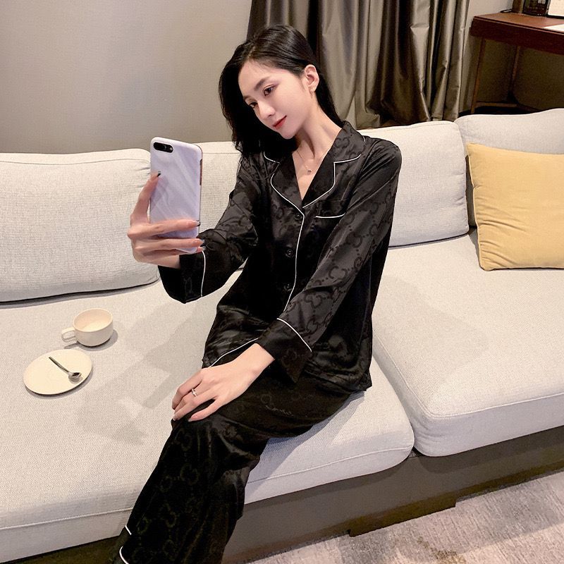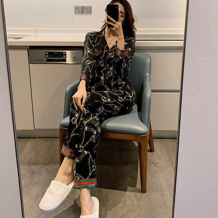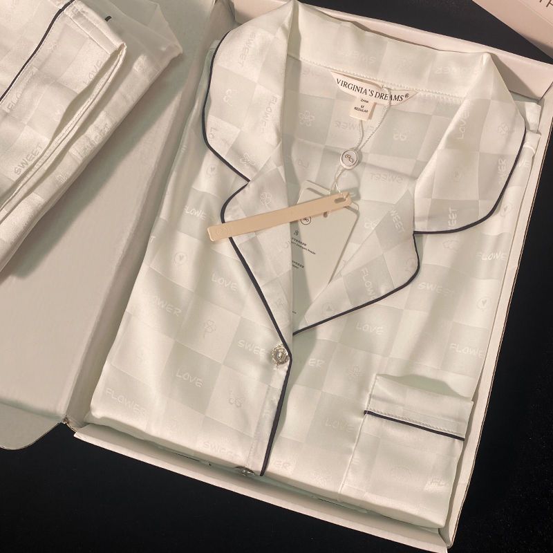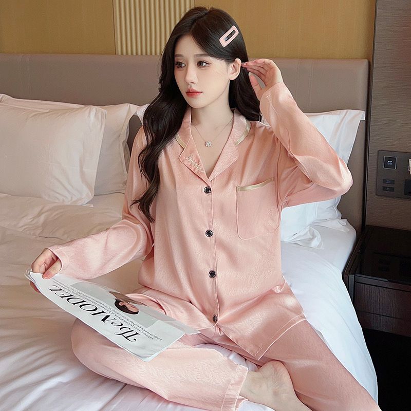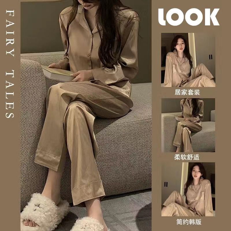 2025 잠옷 여성의 봄과 가을 여름 얼음 실크 긴 소매 바지 얇은 학생 in 기숙사 착용 공장 도매스토어 가기