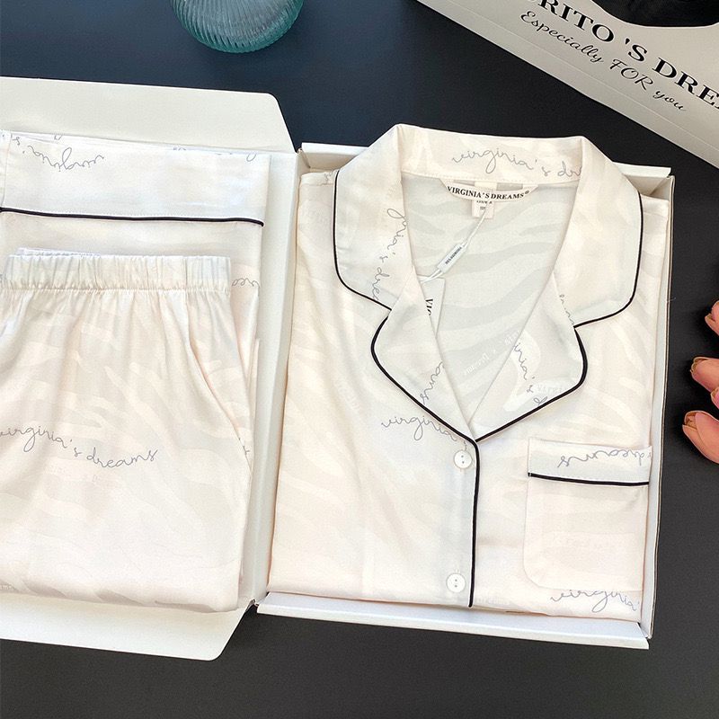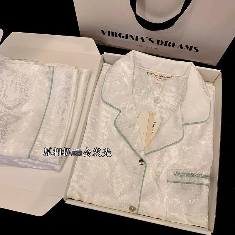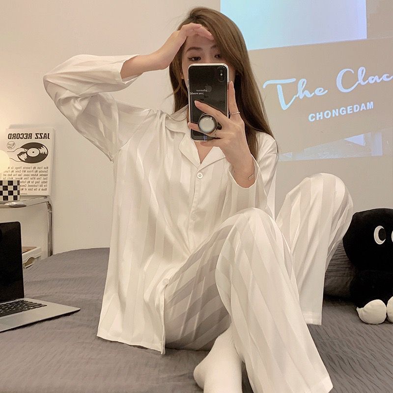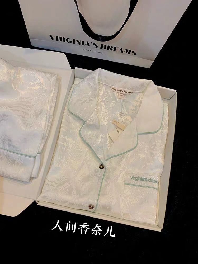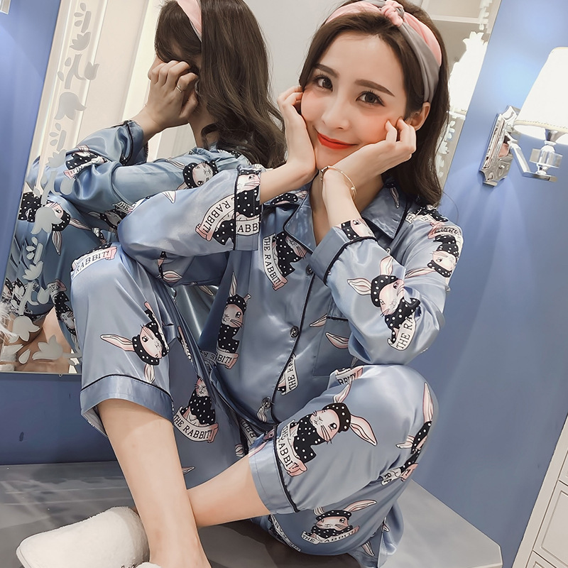2025 잠옷 여성의 봄과 가을 여름 얼음 실크 긴 소매 바지 얇은 학생 in 기숙사 착용 공장 도매스토어 가기