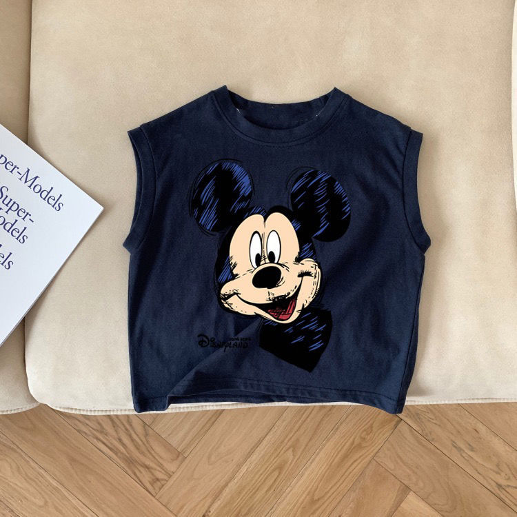 순수 코튼 어린이 아기 귀여운 민소매 티셔츠 2025 중소 어린이 소년 소녀 조끼 인쇄 스타일 탑 여름스토어 가기